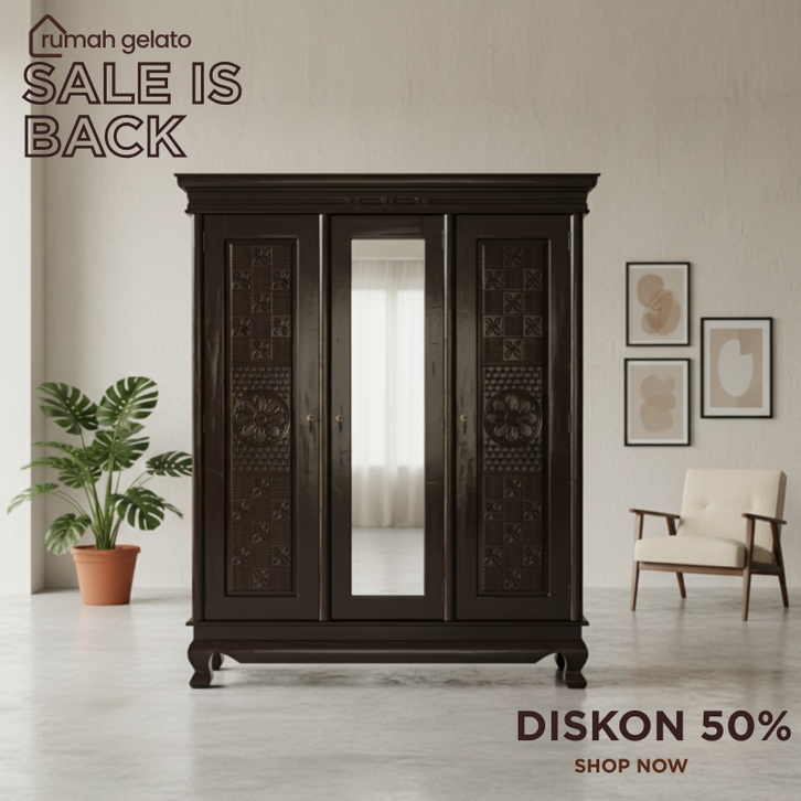 Lemari kayu 3 pintu lemari pakaian kayu high quality lemari baju pakaian kayu jati 3 pintu sliding