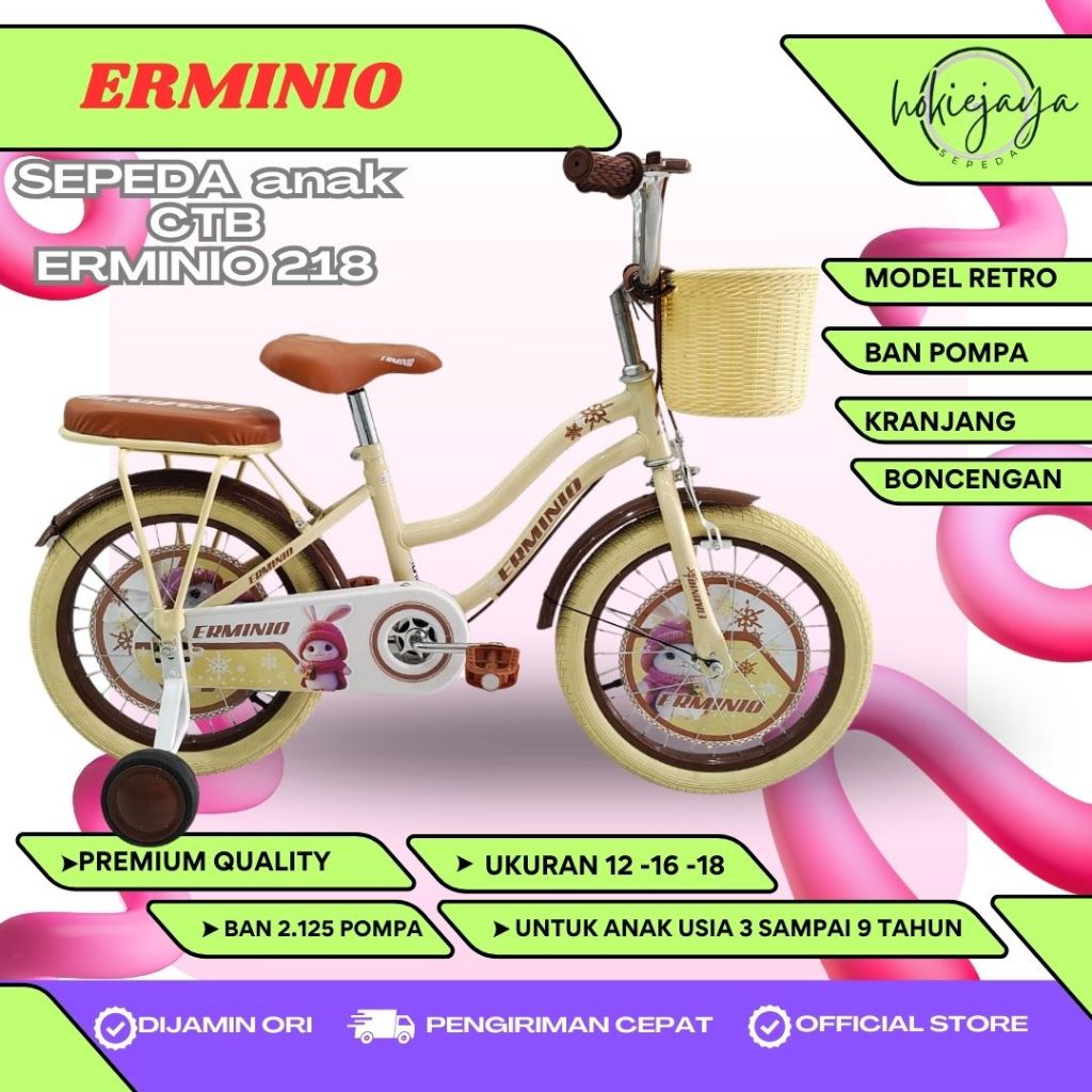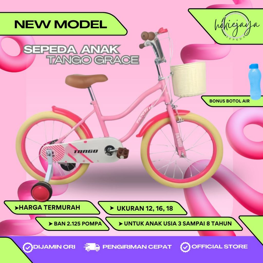 Sepeda mini Anak Perempuan RETRO ERMINIO - TANGO GRACE BAN POMPA ( usia 3 sampai 8 tahun) bonus BOTOL Minum