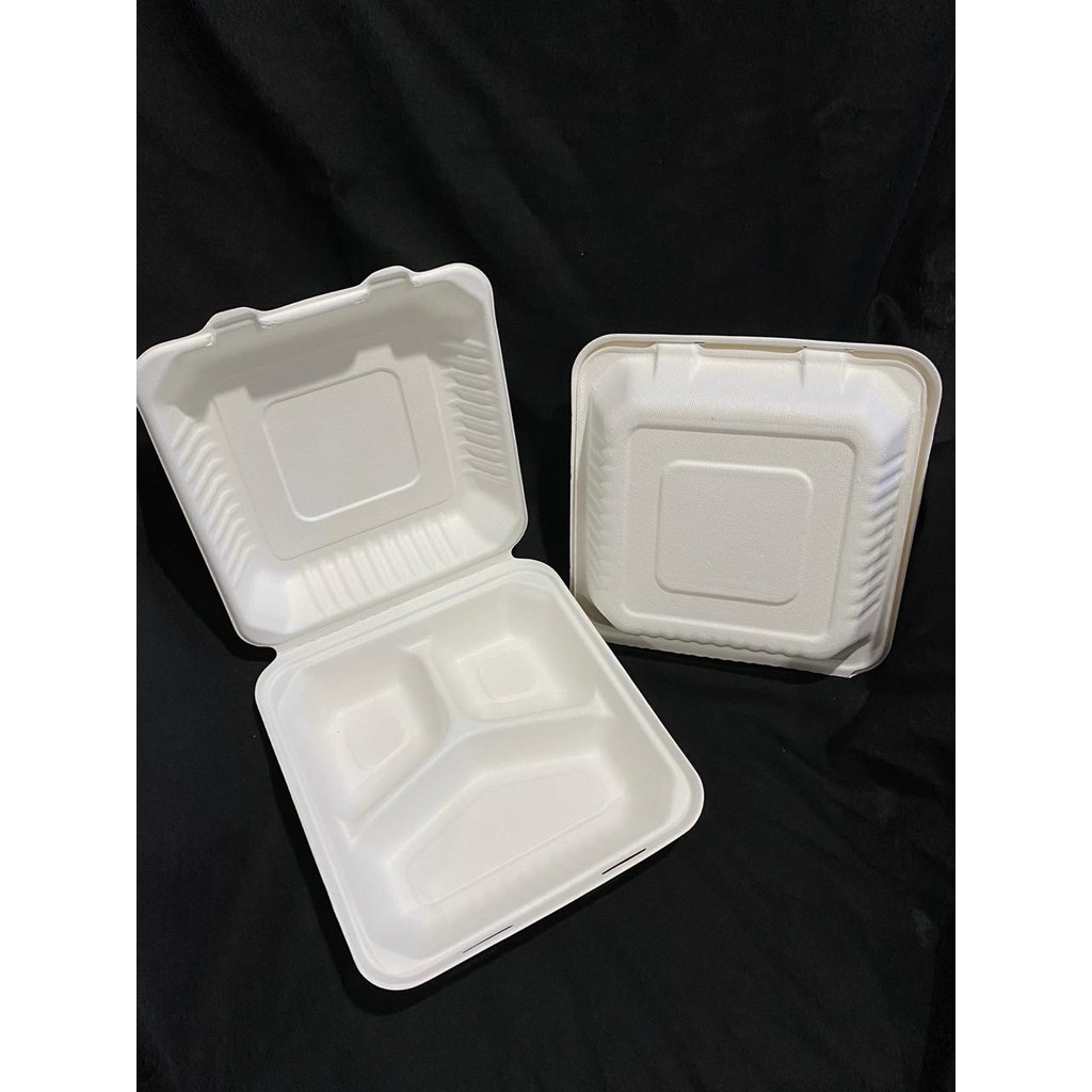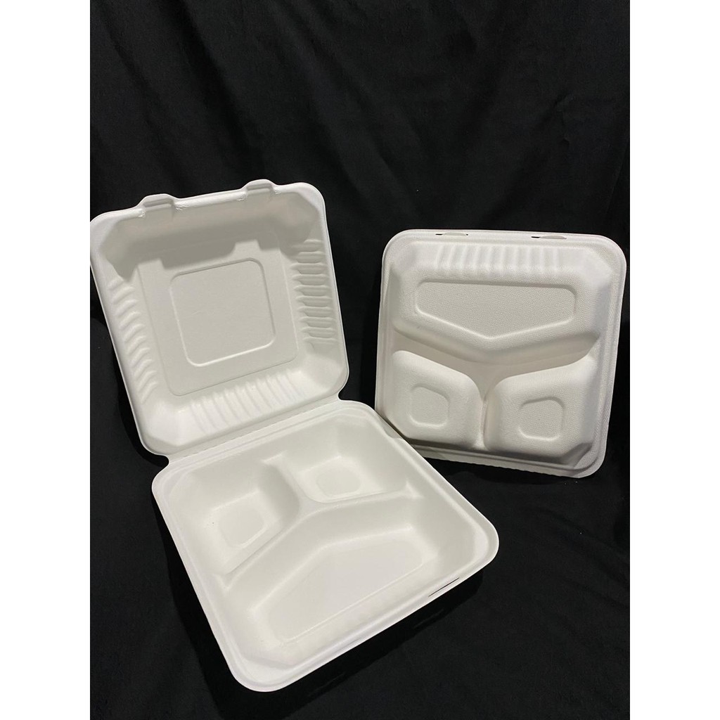 ECOFRENBAG FDA Appoved Lunch Box bagasse ramah lingkungan 3 compartments 9inch