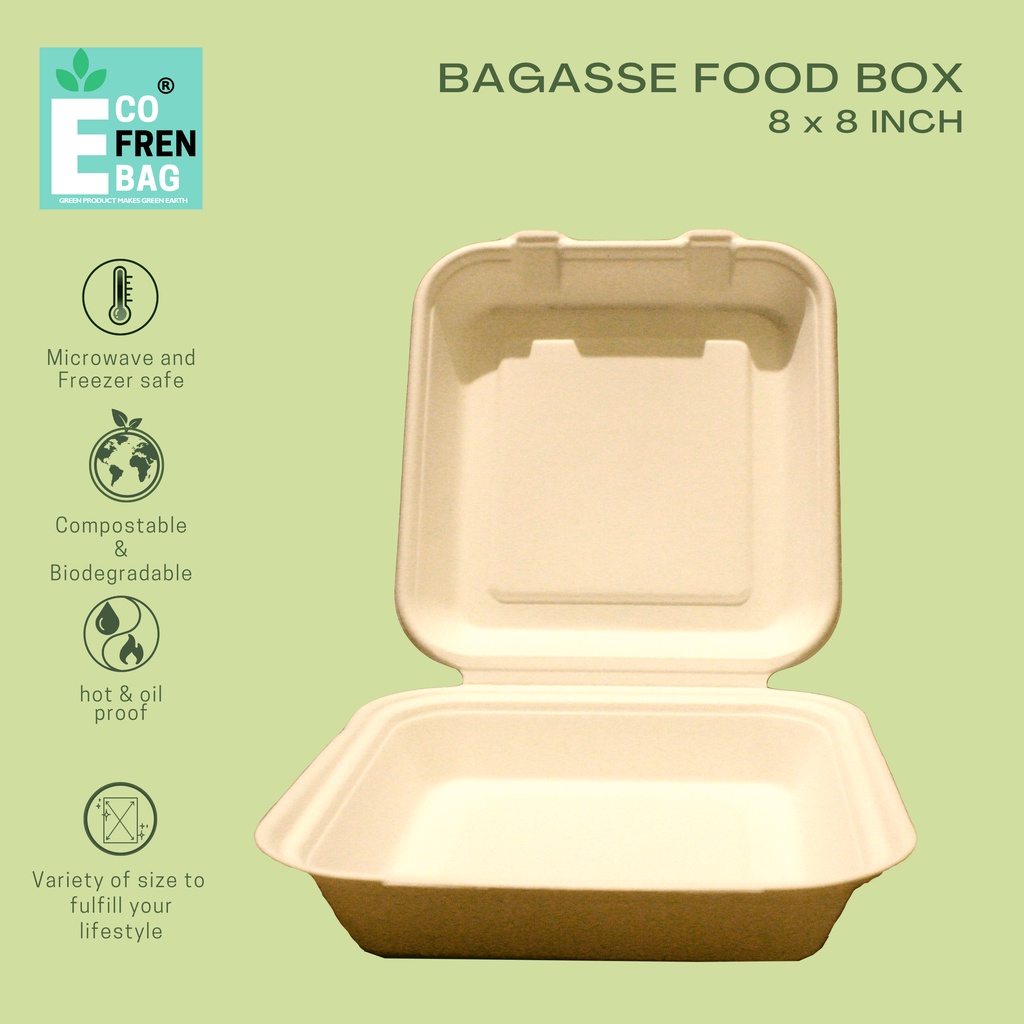 ECOFRENBAG FDA Approved Lunch Box bagasse ramah lingkungan basic food box 8inch