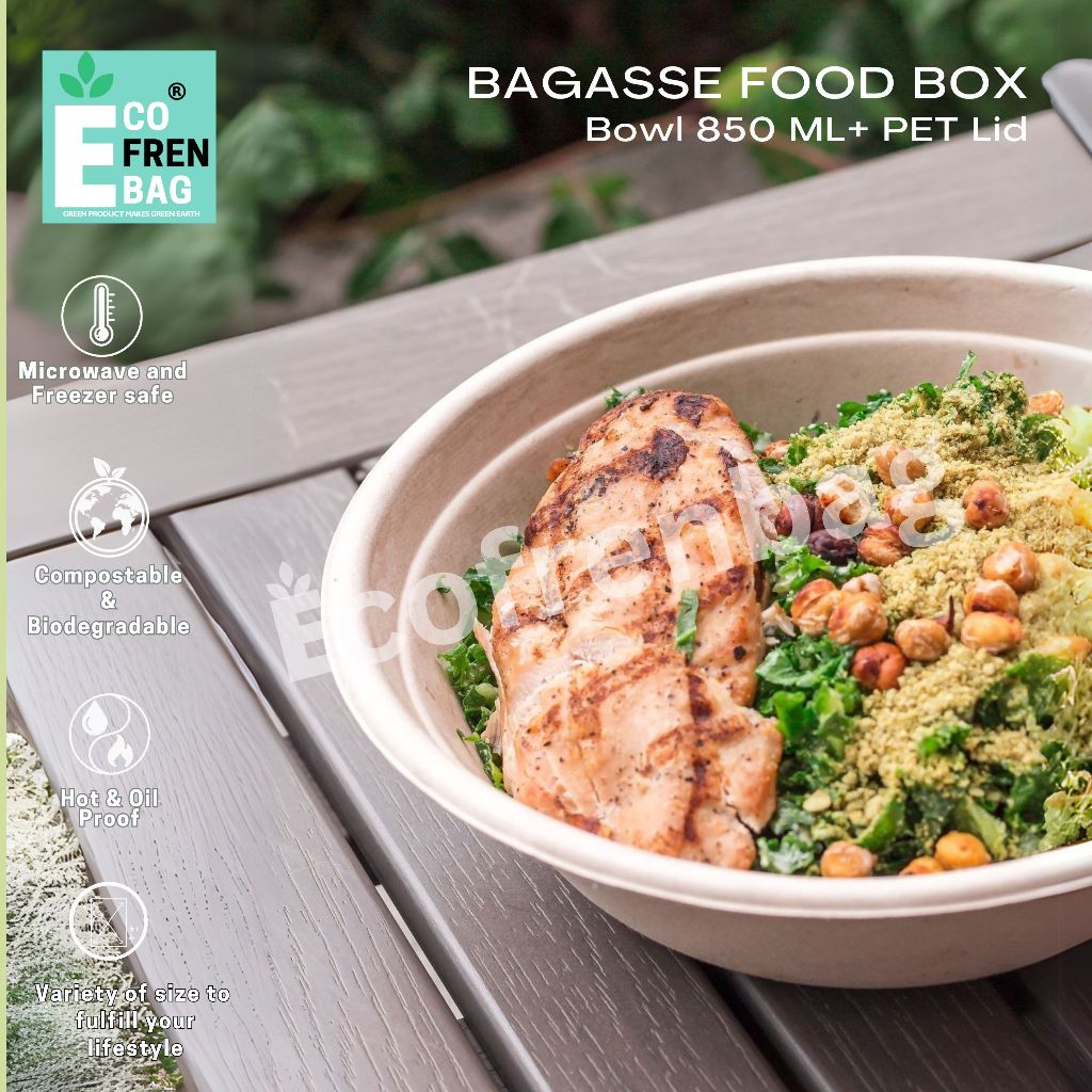 EcoFrenBag Bagasse Bowl 850ml Eco Friendly Ramah Lingkungan Ampas Tebu Sugarcane Takeaway Box