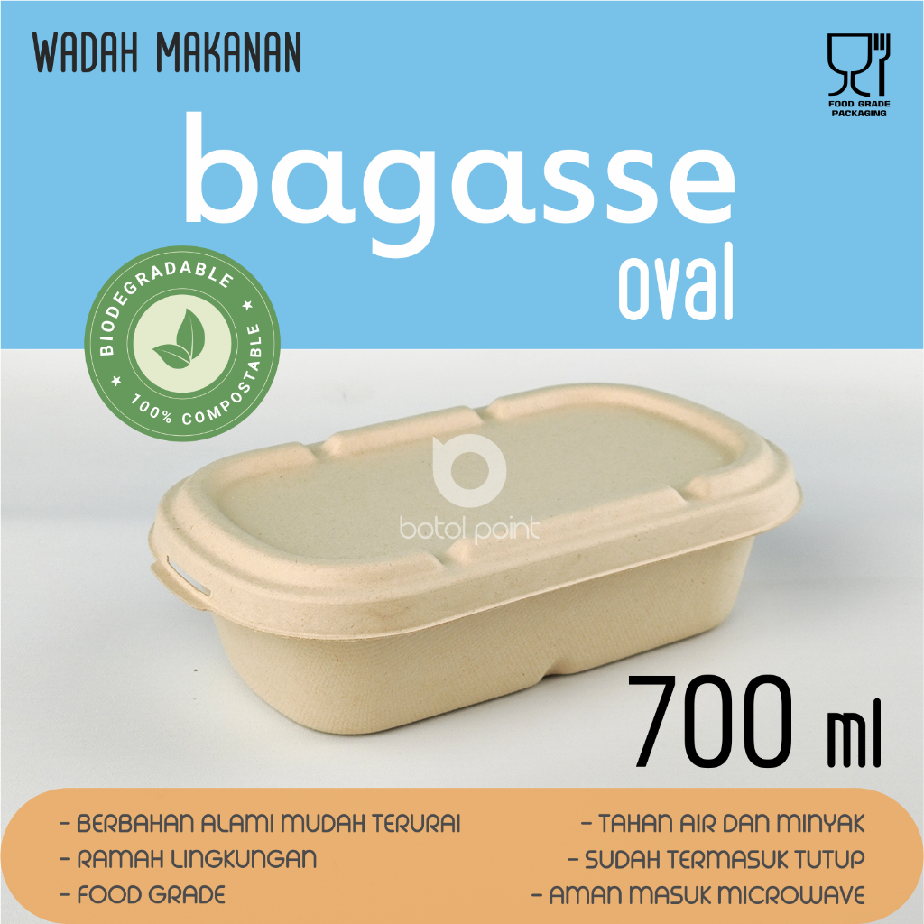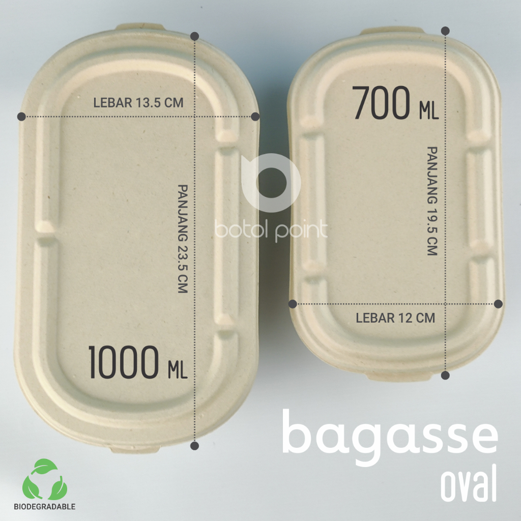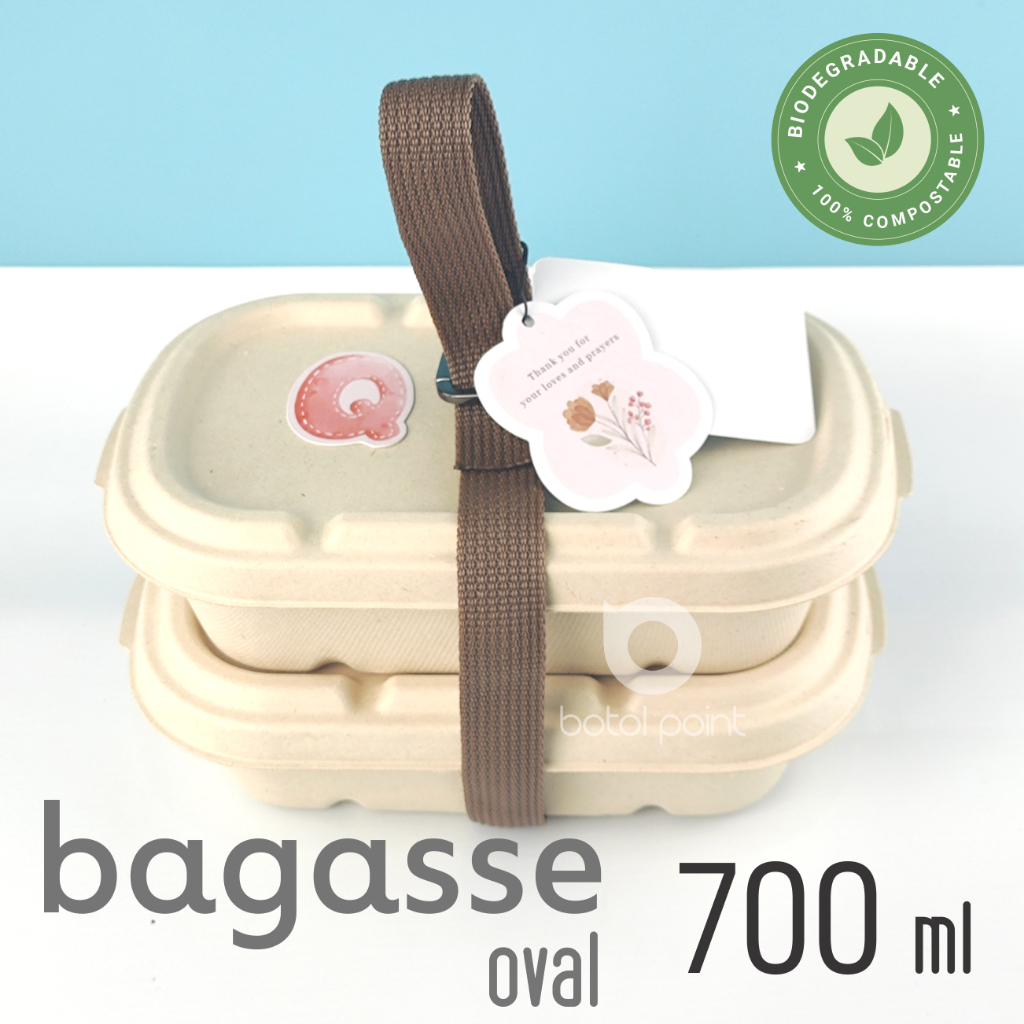 BAGASSE BOX 700 ml OVAL ISI 25 PCS BIODEGRADABLE LUNCH BOX TAKEAWAY BOX WADAH MAKANAN