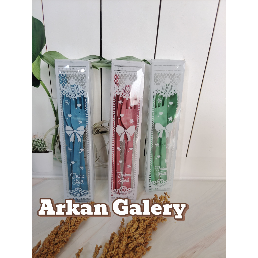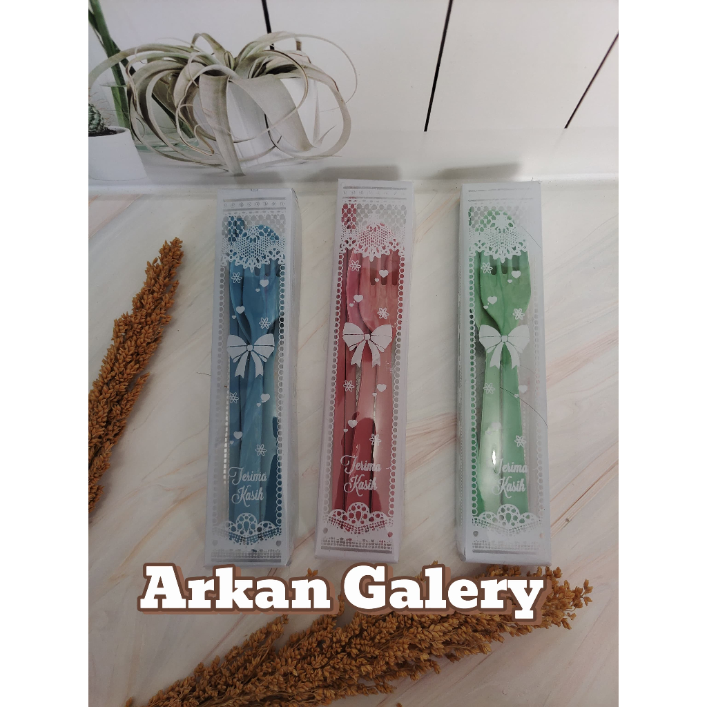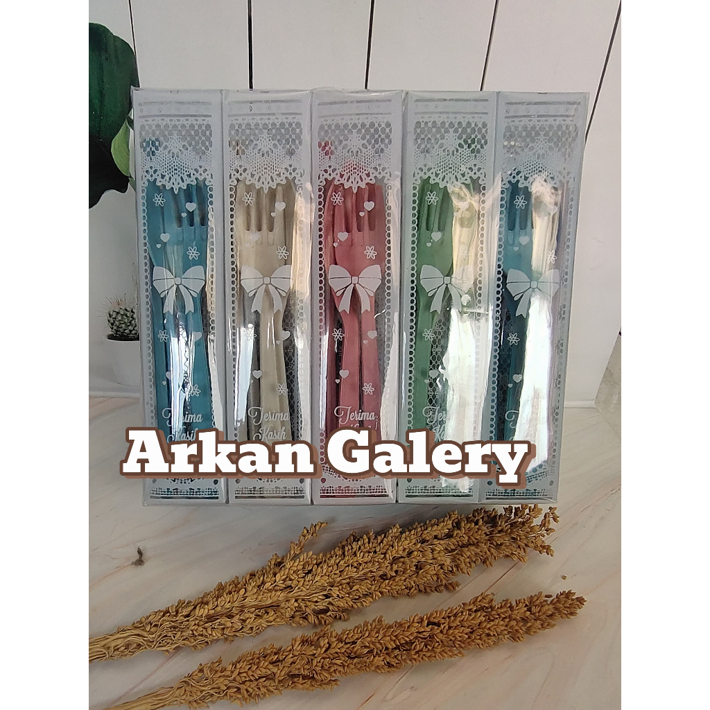 souvenir pernikahan sendok garpu simpit lokal kemas mika motif- 50 pcs