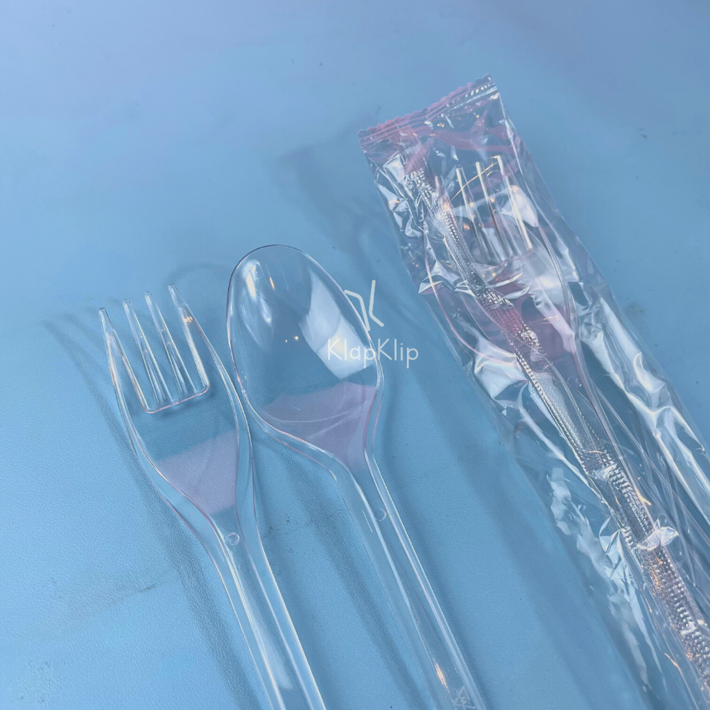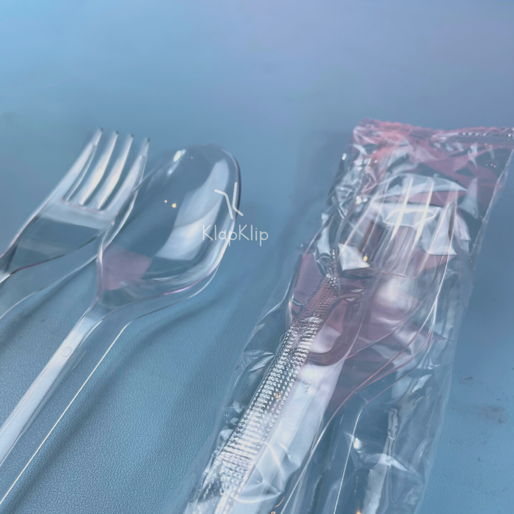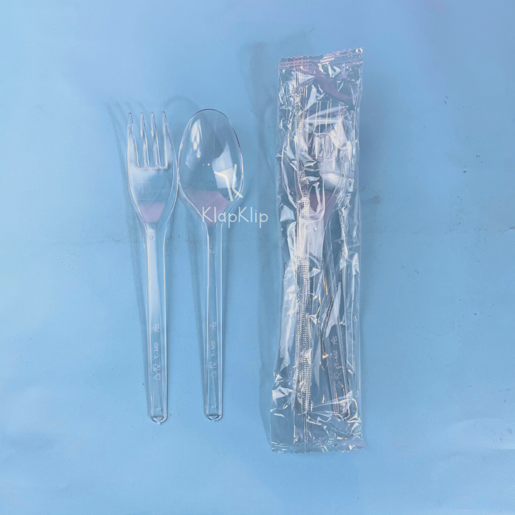 GROSIR 200pcs Sendok Set isi Sendok dan Garpu Bening - Sendok Set Steril Sendok Garpu Bening - Sendok Makan Garpu Makan