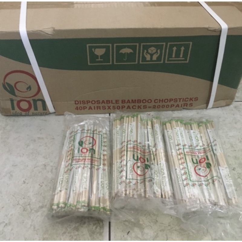 Sumpit Bambu ION Bungkus Plastik + Tusuk Gigi ( 1 dus 50 pak )