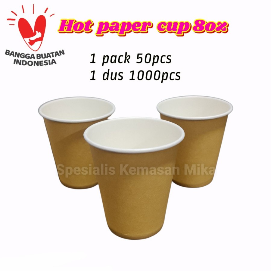 [Dus / 1000 pcs] Hot Paper Cup 8 Oz Putih Hitam Coklat Motif 240ml / Gelas Kertas 8 Oz Putih Hitam Coklat Motif 240ml Ta
