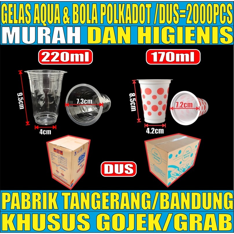 Gelas Plastik Bening Aqua 220ml 2.4gr / Gelas Bola Polkadot Tebal Per Dus Cup Kopi Tahan Panas GJK