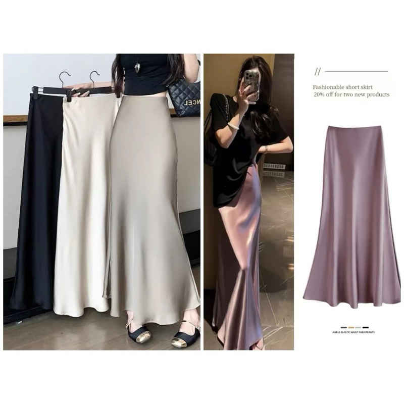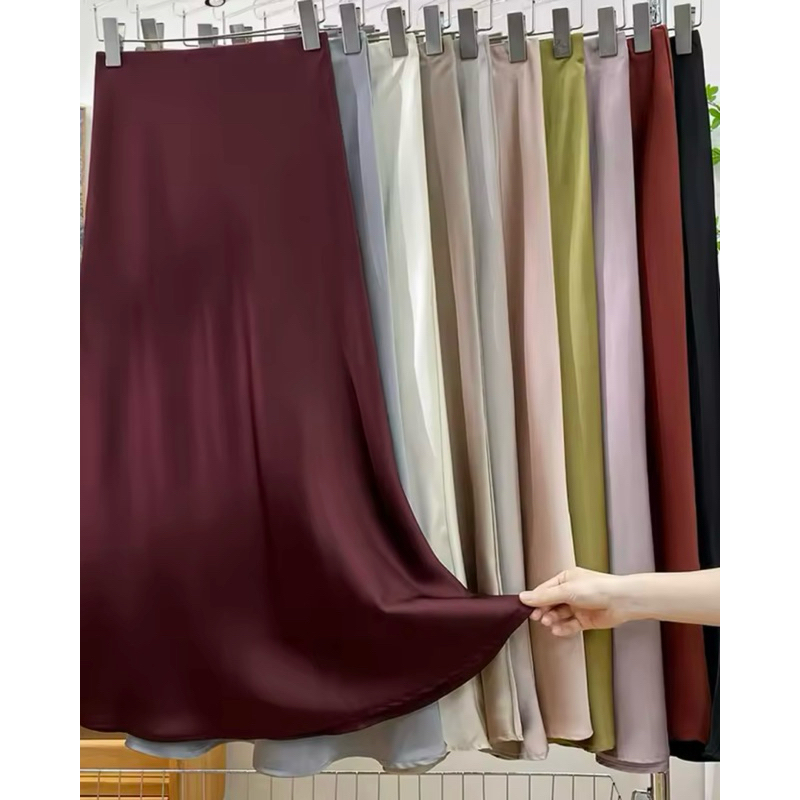 ROK SATIN PANJANG LONG SATIN ROK SATIN SILK SKIRT LONG SATIN SILK