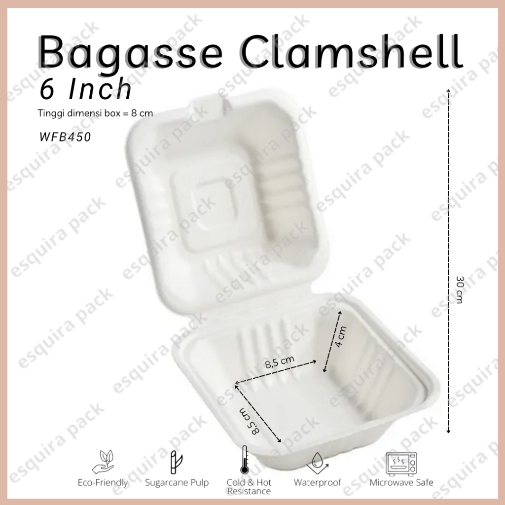 Sugarcane Bagasse Burger / Korean Cake Box / Lunch Box / 25 Pcs / AB003 / B003