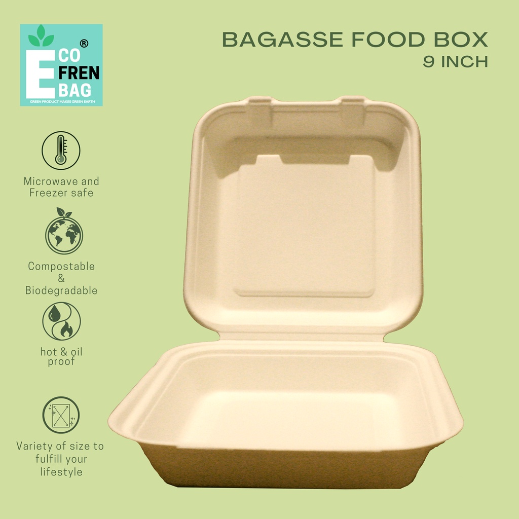 ECOFRENBAG FDA Approved Lunch Box bagasse basic food box 9inch