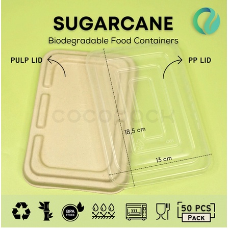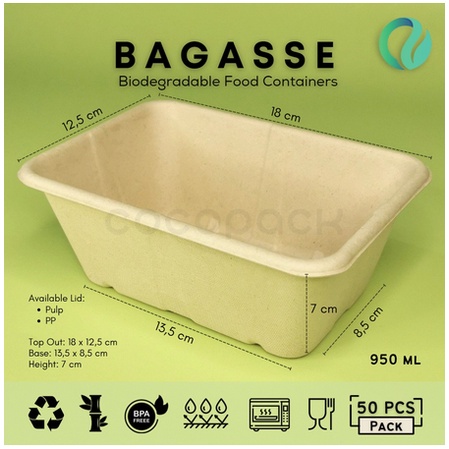 Bagasse Brown Rectangle 950ml + Lid - 25pcs