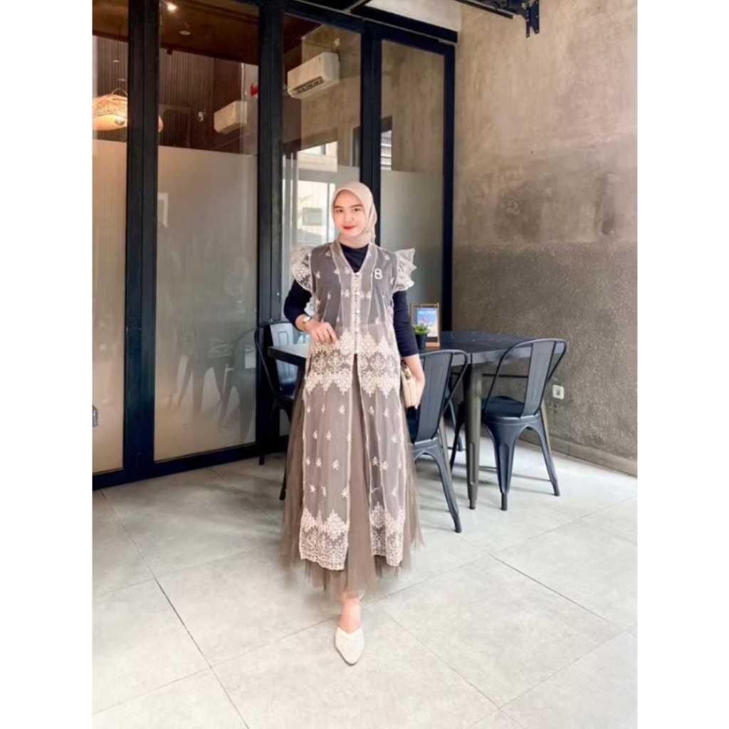 OUTER VEST LONG TANGAN PENDEK - OUTER BRUKAT TERLARIS