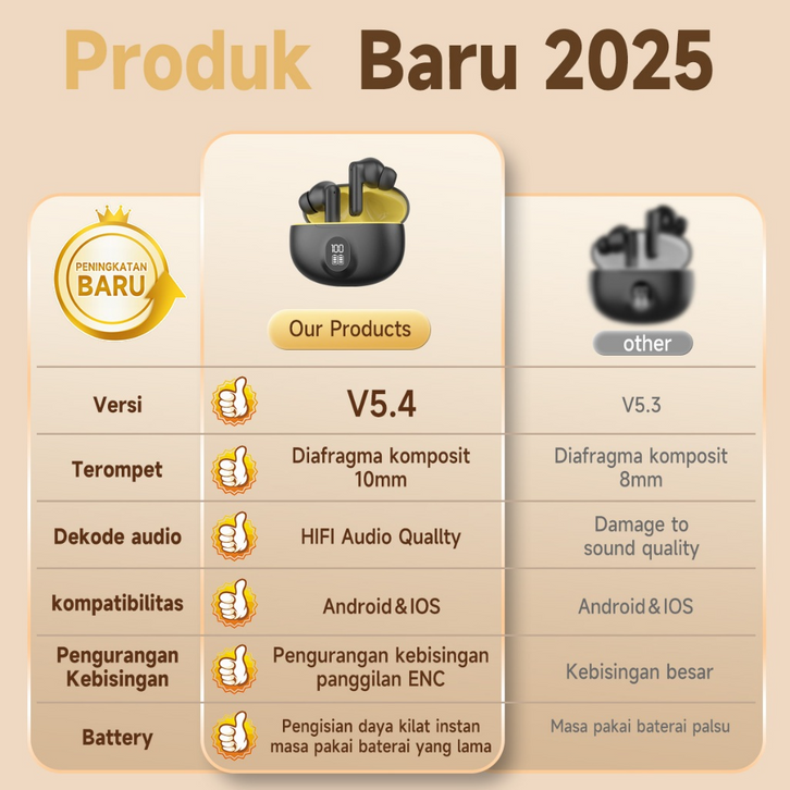 Jovitech EP95R Wireless Eaphone Bluetooth 5.4 Low Latency TWS Gaming Earbuds LED Long battery life HiFi Stereo Bass