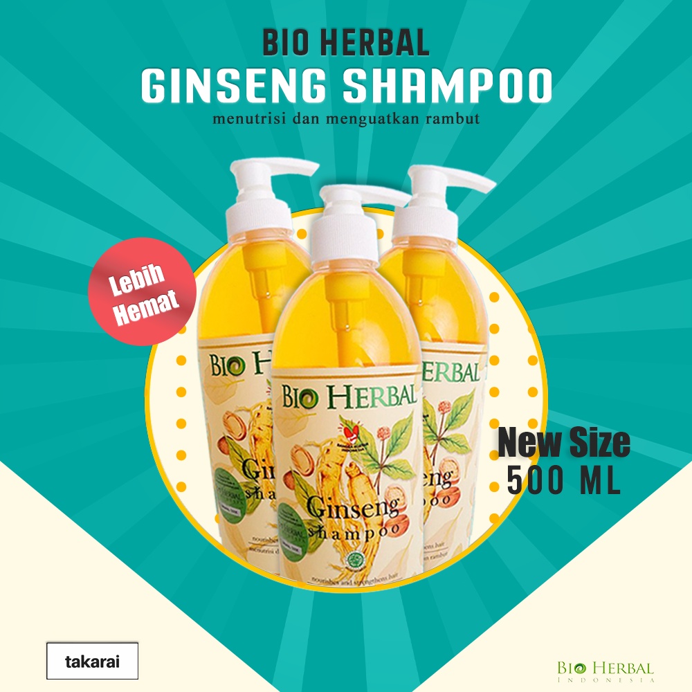 Takarai 500ml Shampo Ginseng Bio Herbal New Size Dengan Ginsenosida Memberi Nutrisi Ekstra untuk Akar Rambut Tumbuh Lebi