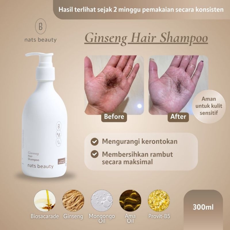 Nats Beauty Ginseng Hair Shampoo 300ml | Perawatan Rambut Rontok | Hairfall Shampoo | Hair Growth Shampoo | Shampoo Untu