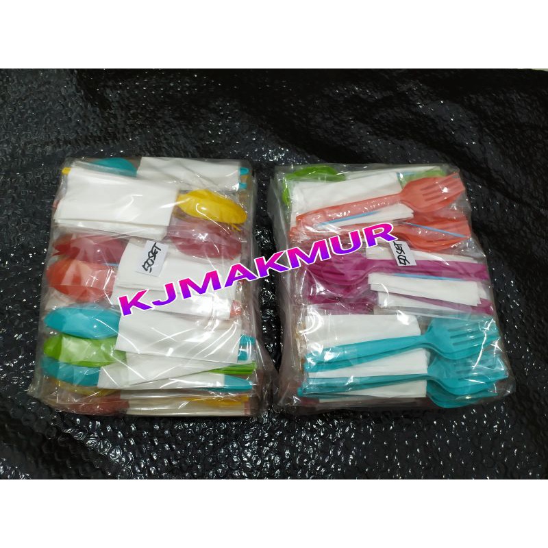 Paket Sendok Garpu Warna/Sendok Plastik Plastik Set (Sendok Garpu Tusuk Gigi Tissue 50 Set)