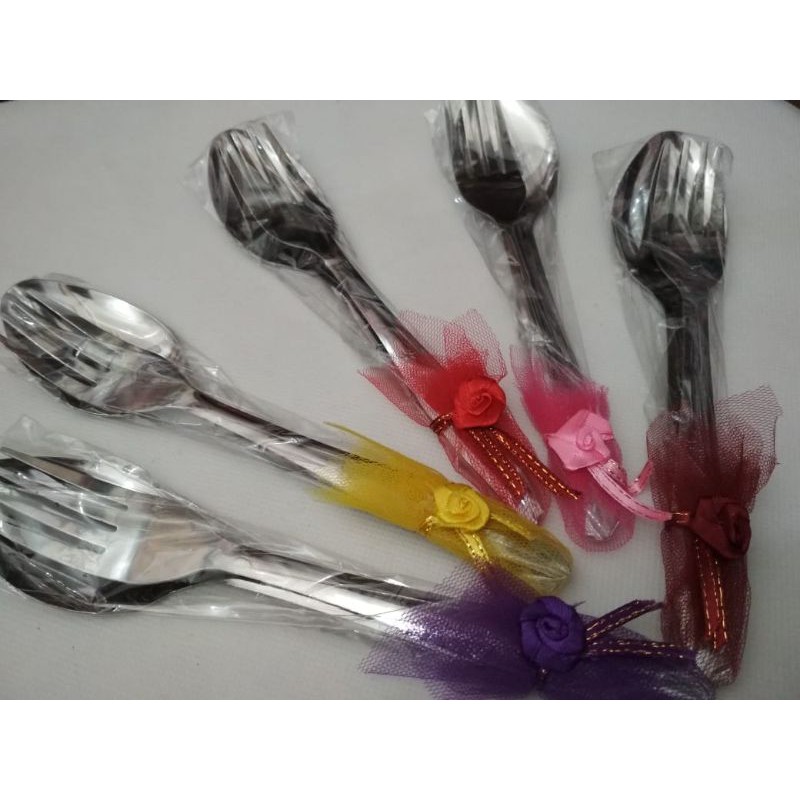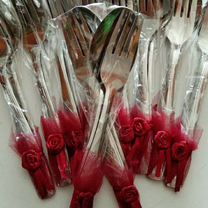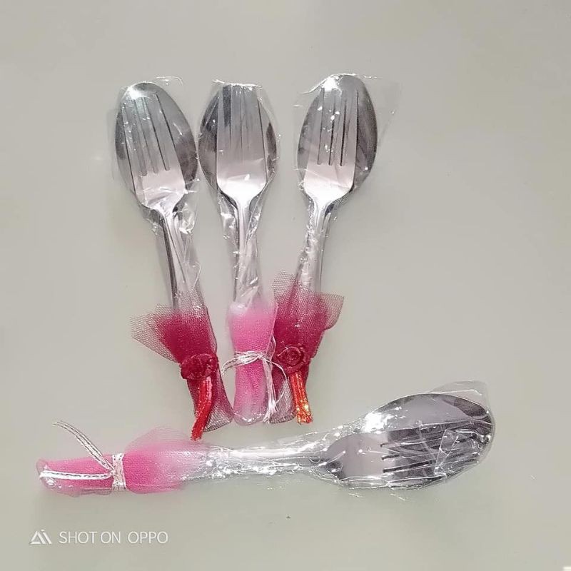 Souvenir 100 Pcs Sendok Garpu Makan Kemasan Plastik Tile Sovenir Pernikahan Murah Besar