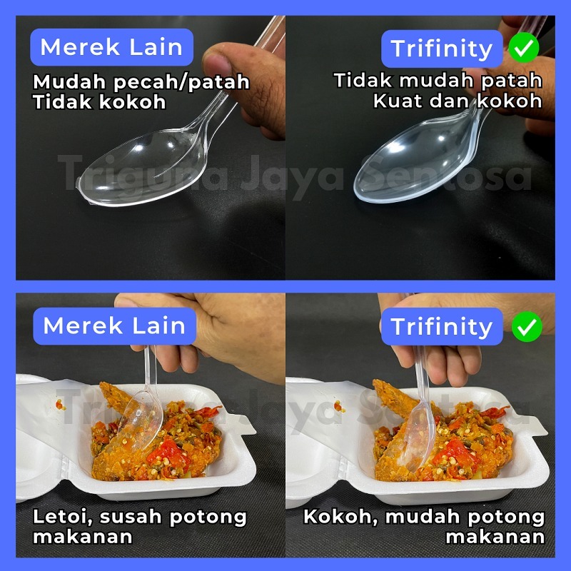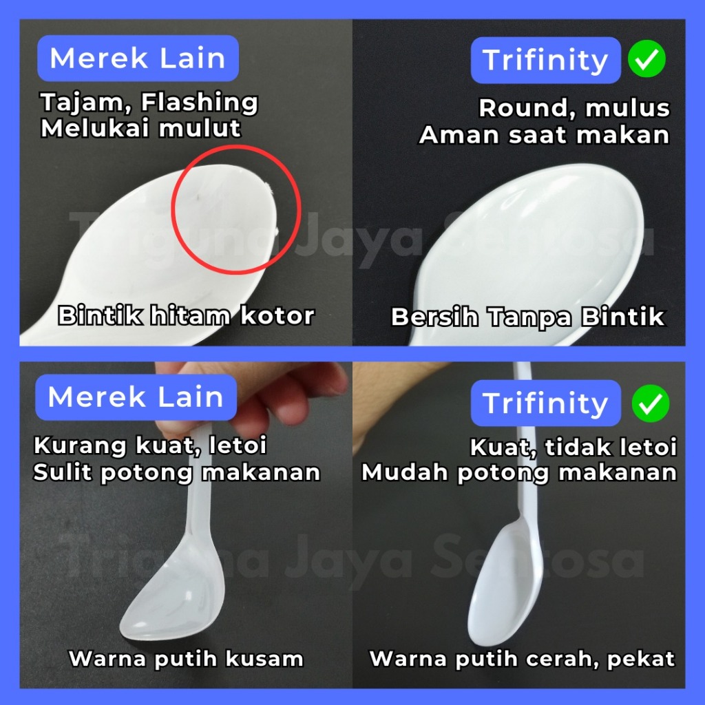 Sendok Makan Plastik HALAL Kuat Tebal Panjang Bening / Hitam / Putih Trifinity Dus Bisa Semua Jskrm