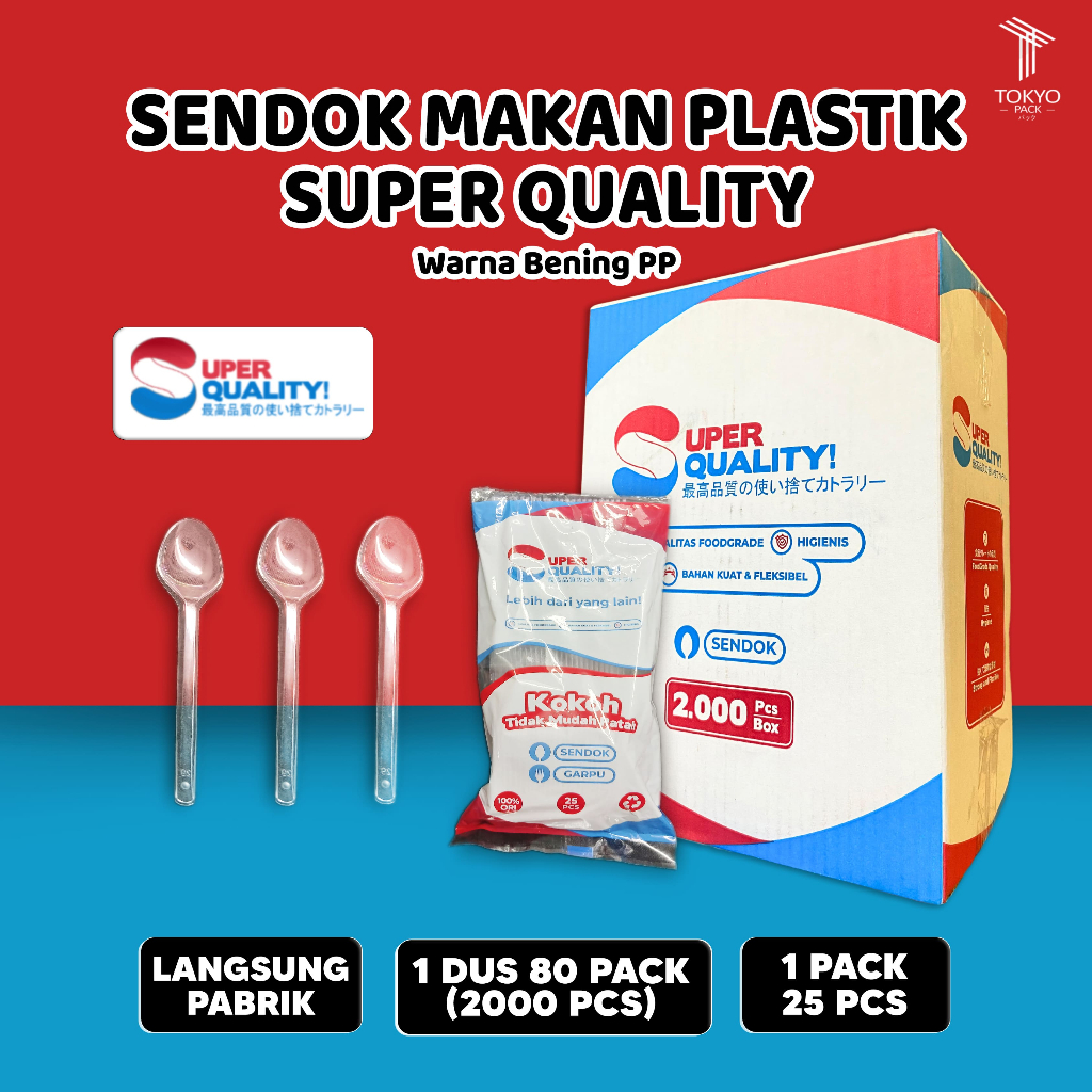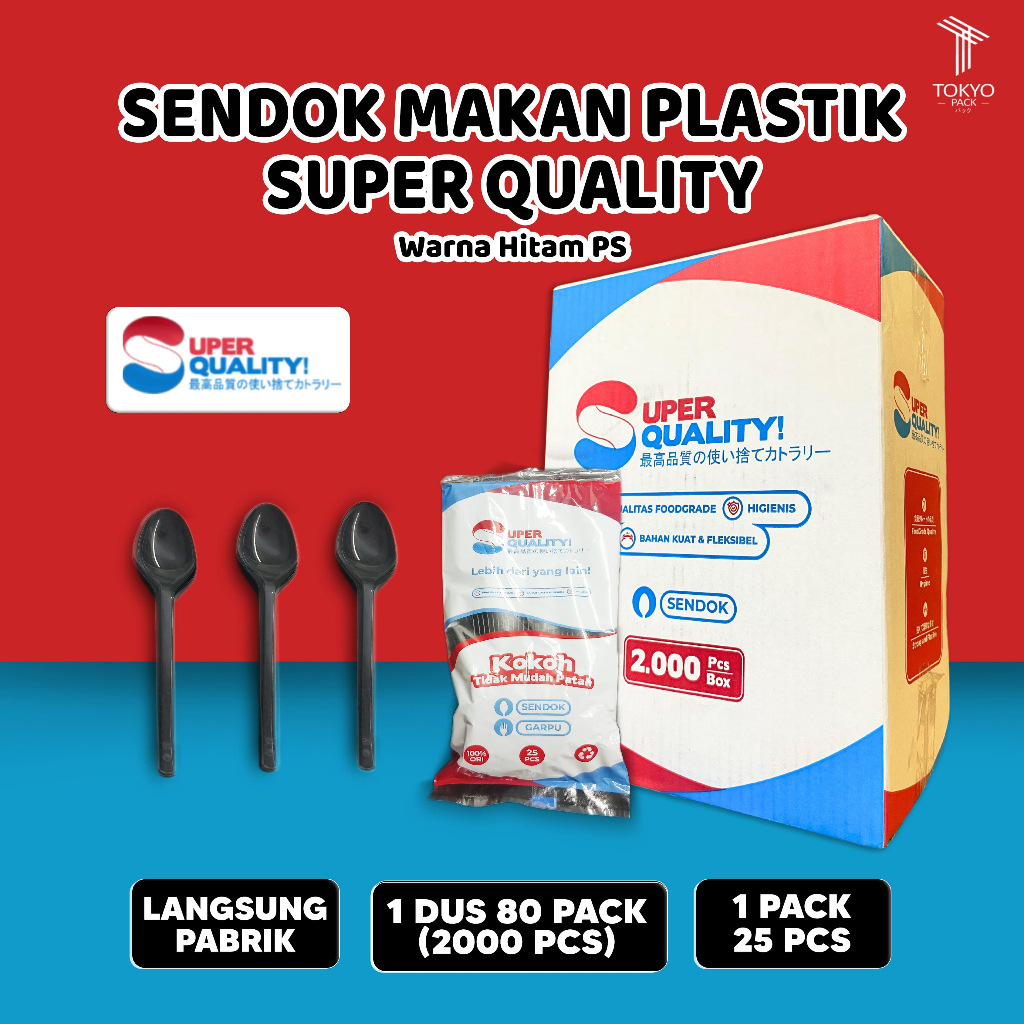 Sendok Makan Plastik Bening, Putih & Hitam / Sendok Plastik Panjang / Sendok Makan Food Grade Tebal Per Dus