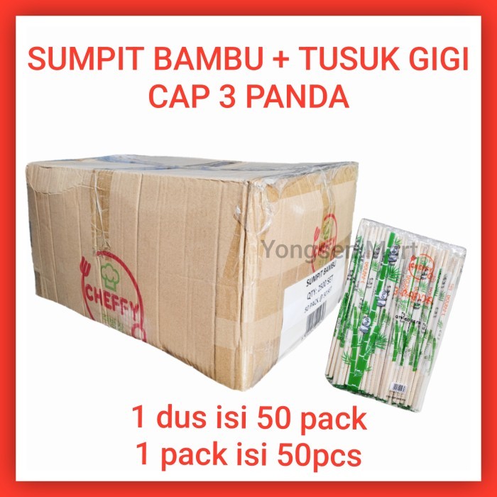 ( 1 Dus ) sumpit bambu + tusuk gigi cap 3 panda isi 50 pak x 50 pasang
