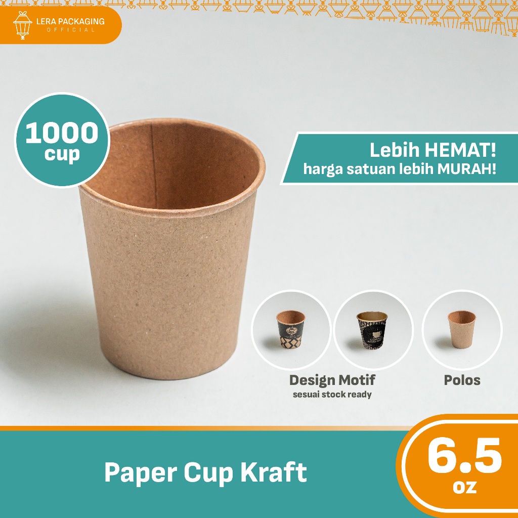 1 Dus - Paper Cup KRAFT Coklat 6,5 Oz / Gelas Kertas Tahan Panas untuk Kopi Teh - Polos/Motif