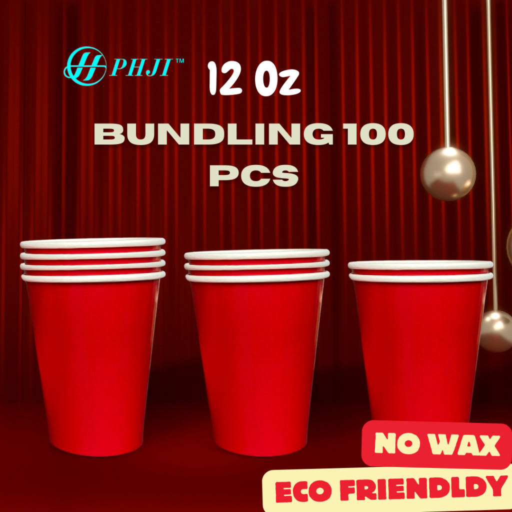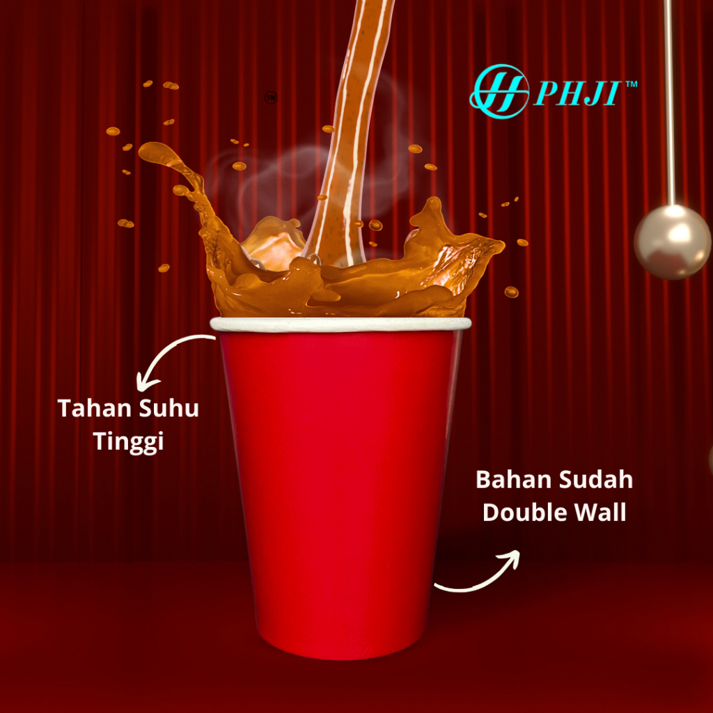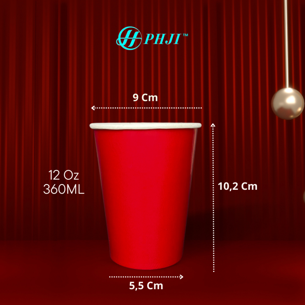 [100 PCS ] PAPERCUP MINUMAN 12 OZ POLOS DOUBLE WALL KRAFT MERAH FOOD GRADE - GELAS KERTAS MINUMAN TAHAN PANAS & DINGIN T