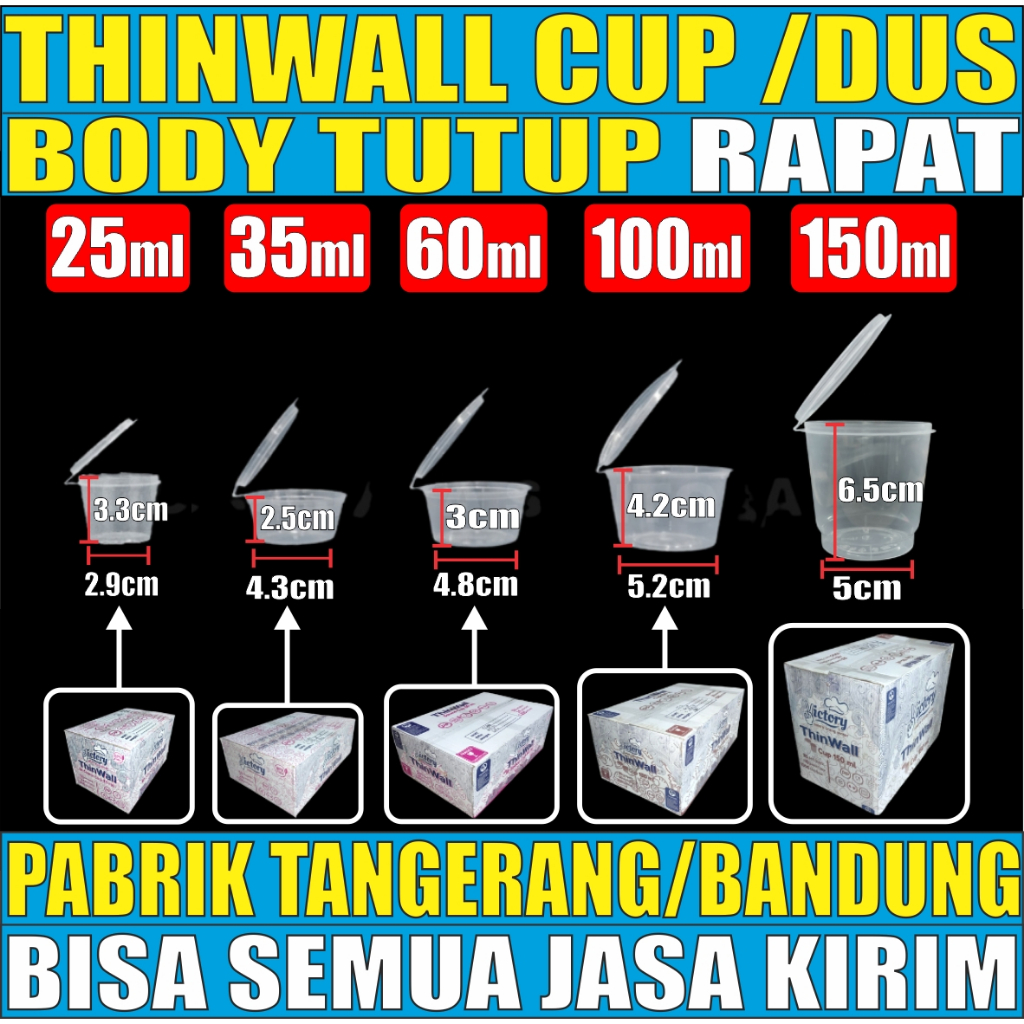 Thinwall Cup Rapat 25ml 35ml 60ml 100ml 150ml Dus Bulat Cup Sambel n Cup Puding Plastik Jskrm