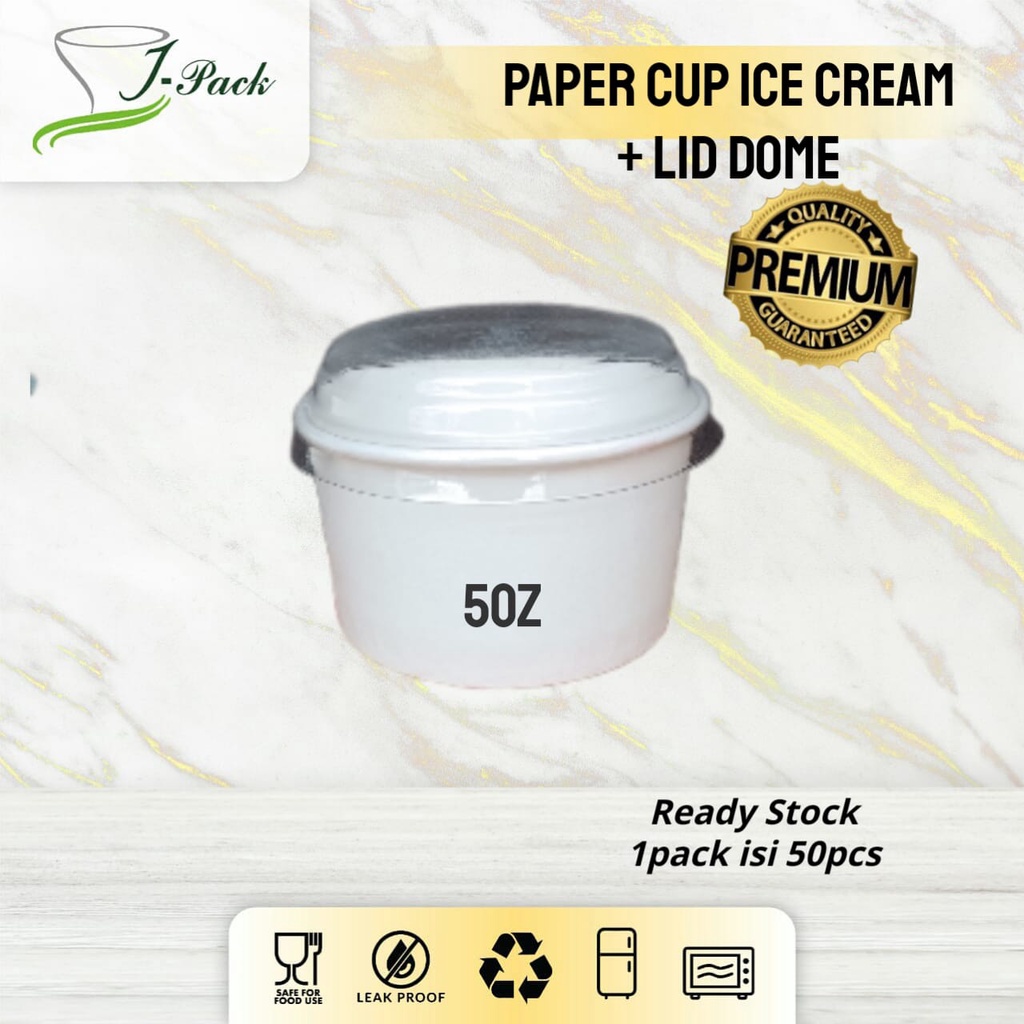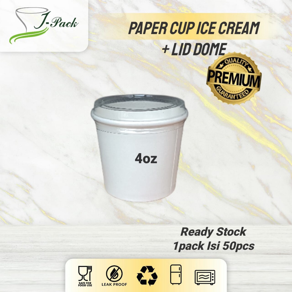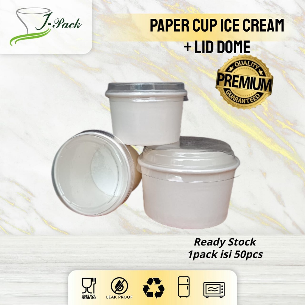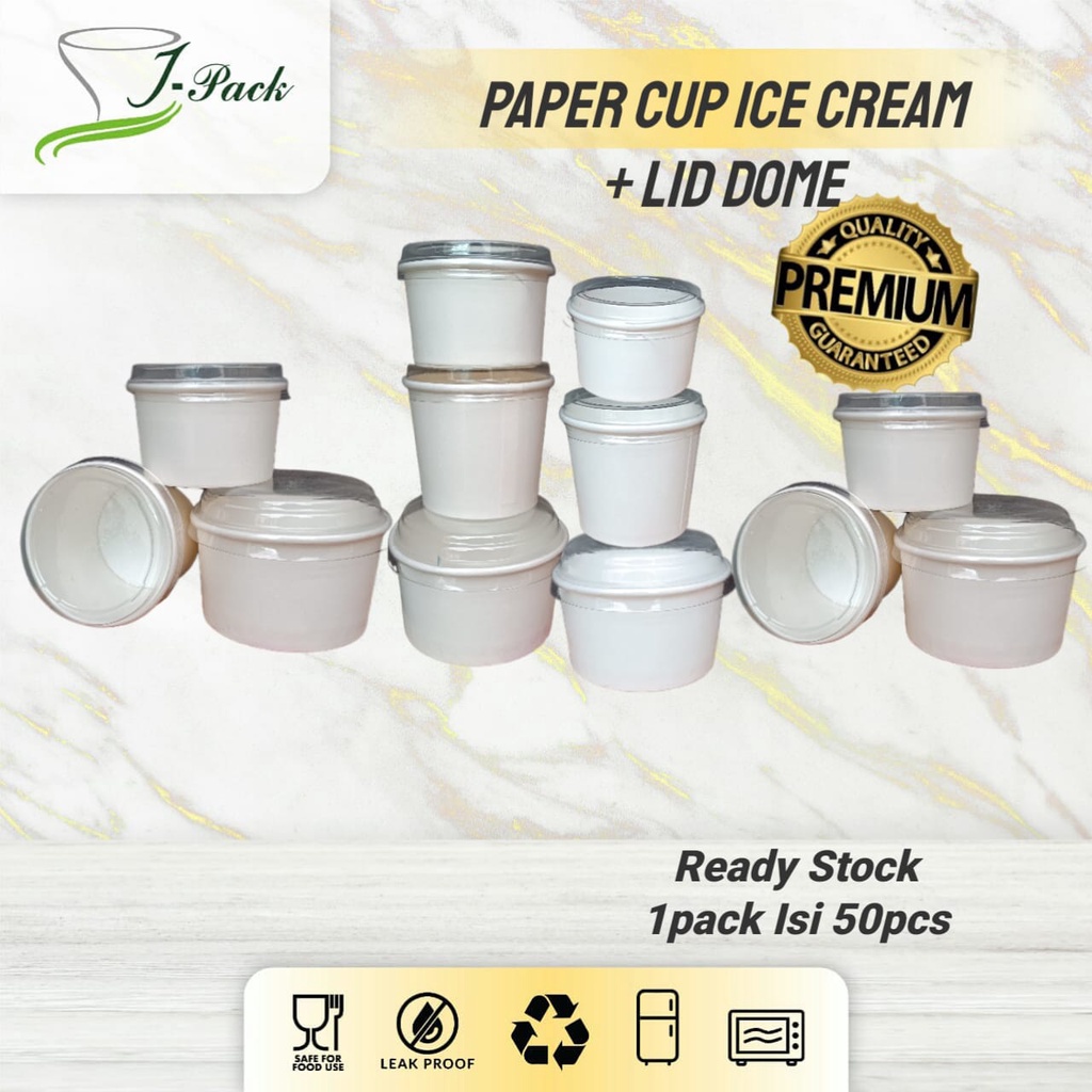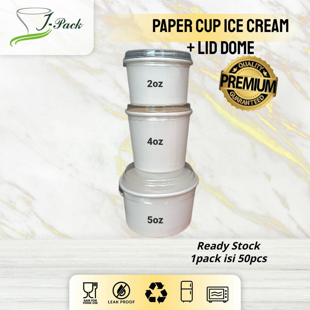 PAPER ICE CREAM CUP COLD / DPE + LID DOME (TUTUP BENING) (2oz, 4oz, 5oz)- PER 50 PCS