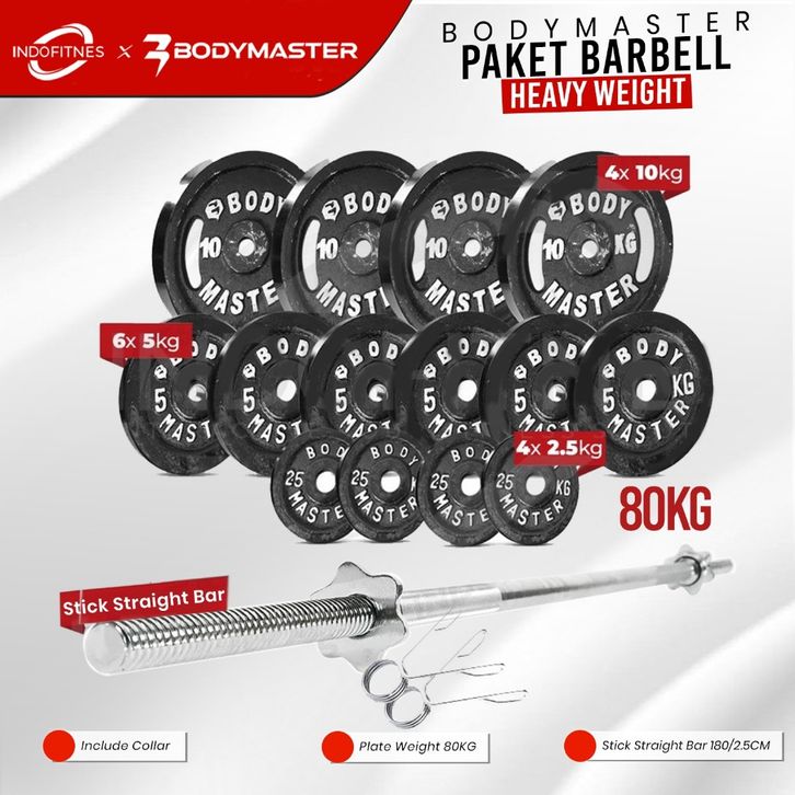 Promo BODYMASTER Paket Barbell 180cm + Plate Besi / Barbel 1,8m Iron Plate Keren