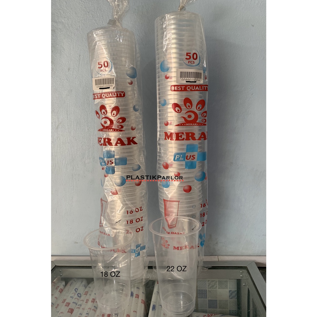 Cup / Gelas Plastik Merak Plus Datar / Oval Uk. 14 Oz, 16 Oz, 18 Oz, 22 Oz (1 Dus)