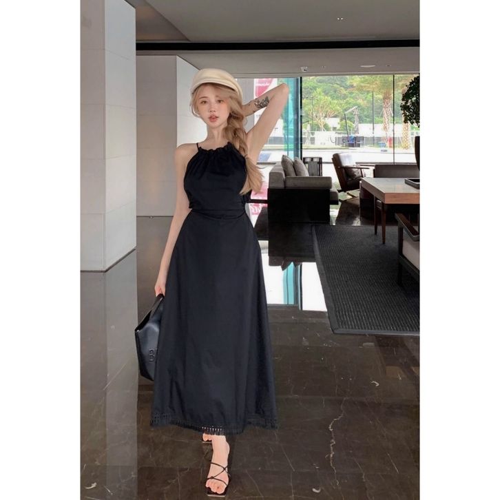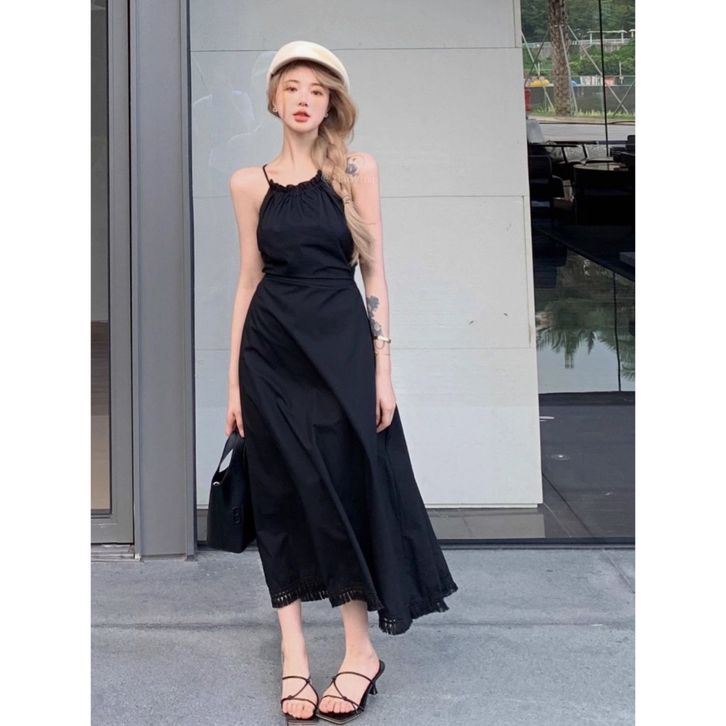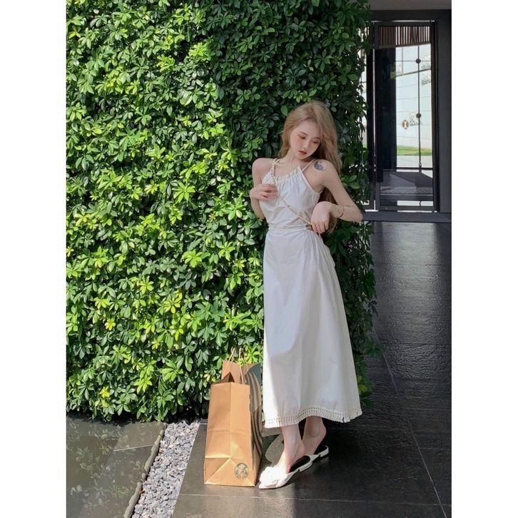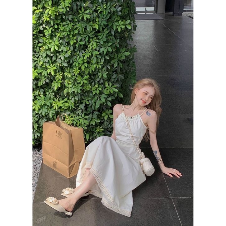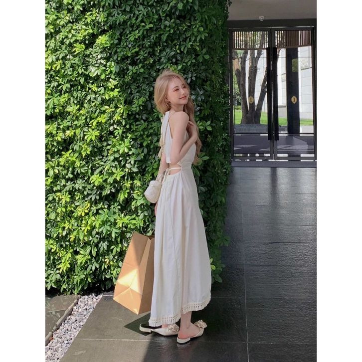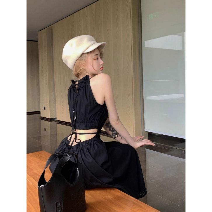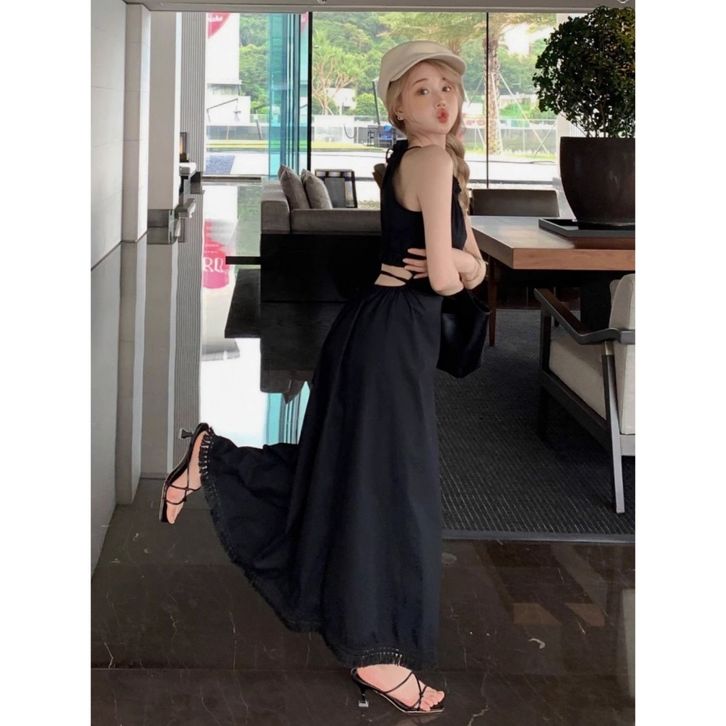 dress darling dswp154 gaun suspender berongga rumbai gaun panjang pantai pinggang tali belakang seksi tanpa lengan