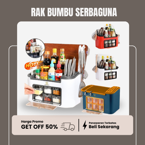Rak Susun Serbaguna rak Bumbu Dapur All In One 6 Laci Free 6 Pcs Sendok Bumbu Tempat Penyimpanan Multifungsi Terbaru
