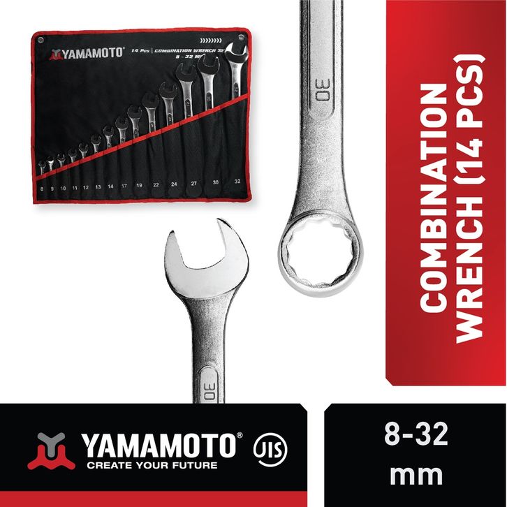 YAMAMOTO Kunci Ring Pas Set / Set Combination Wrench / 14 pcs (8-32mm)