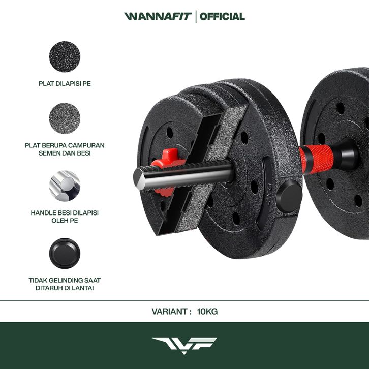 Barbel Barbel Original WANNAFIT Barbell / Dumbbell Set 10kg | Alat Latihan Beban