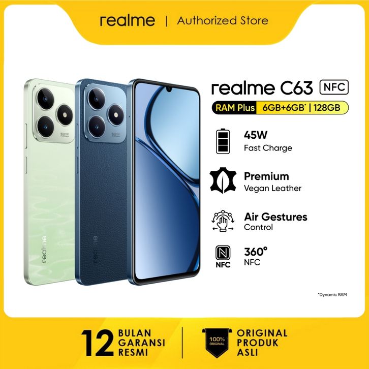 Hp Murah realme C63 8GB+8GB* | 128GB 45W Fast Charge| 5000mAh Durable Battery | AI Boost Engine | 90Hz Eye Comfort Displ