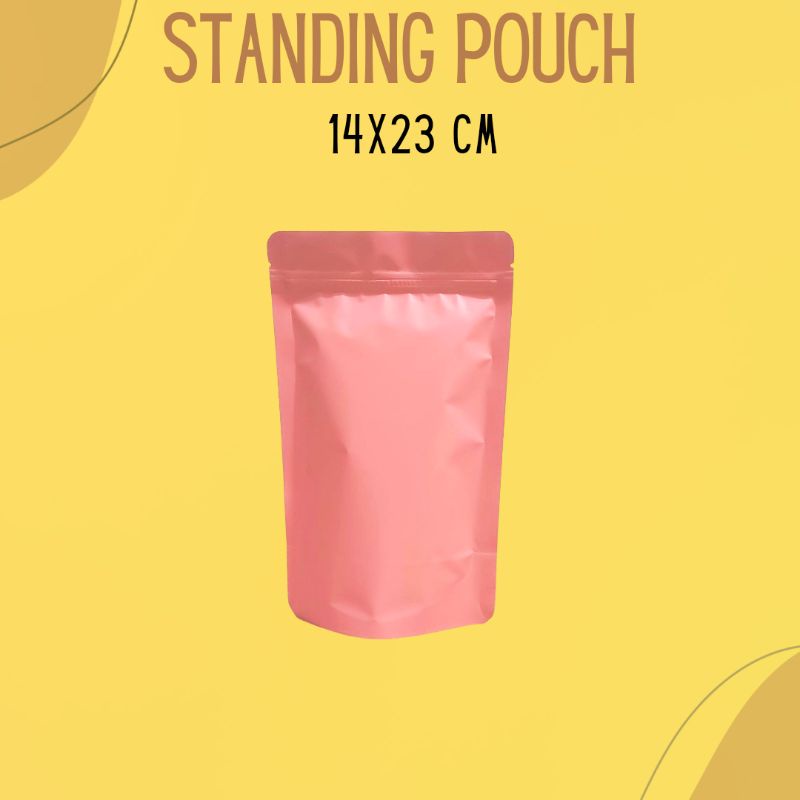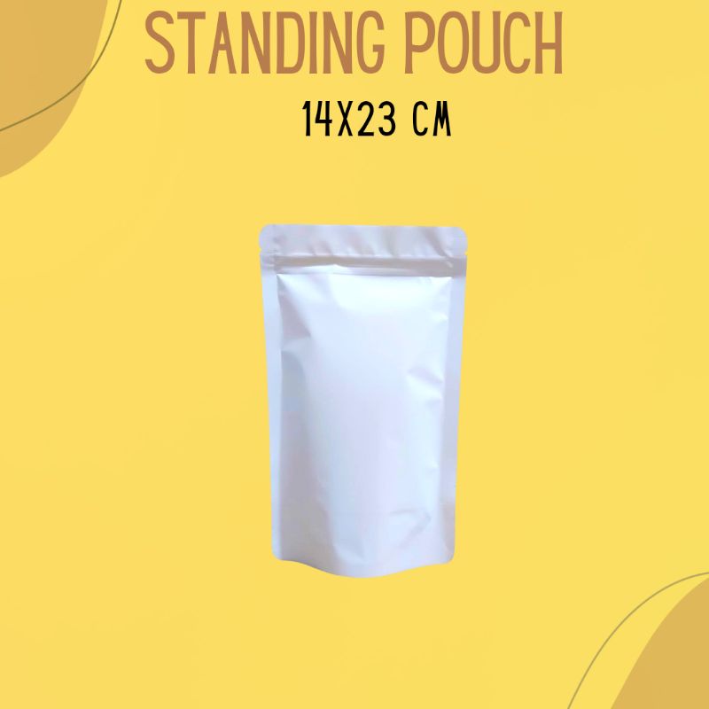 STANDING POUCH/PLASTIK KLIP MODEL FULL ALUMUNIUM FOIL ZIPLOCK /KEMASAN SNACK 14x23 (isi 50 pcs) (CH)