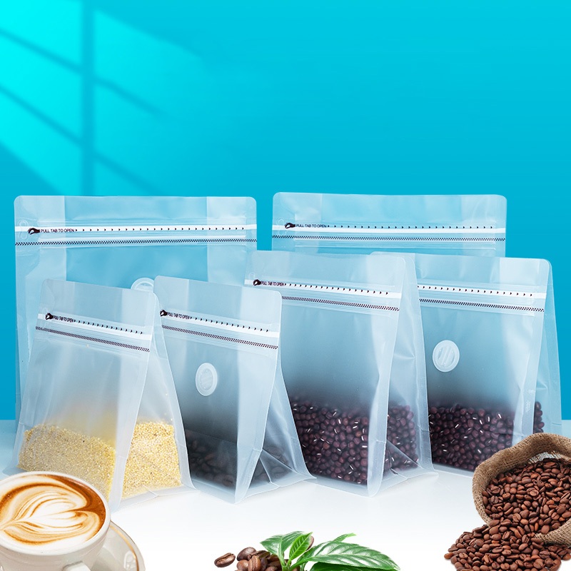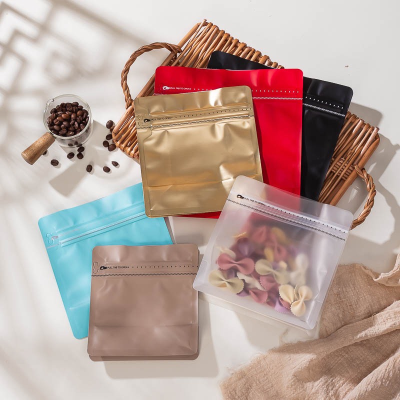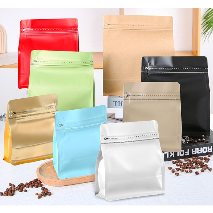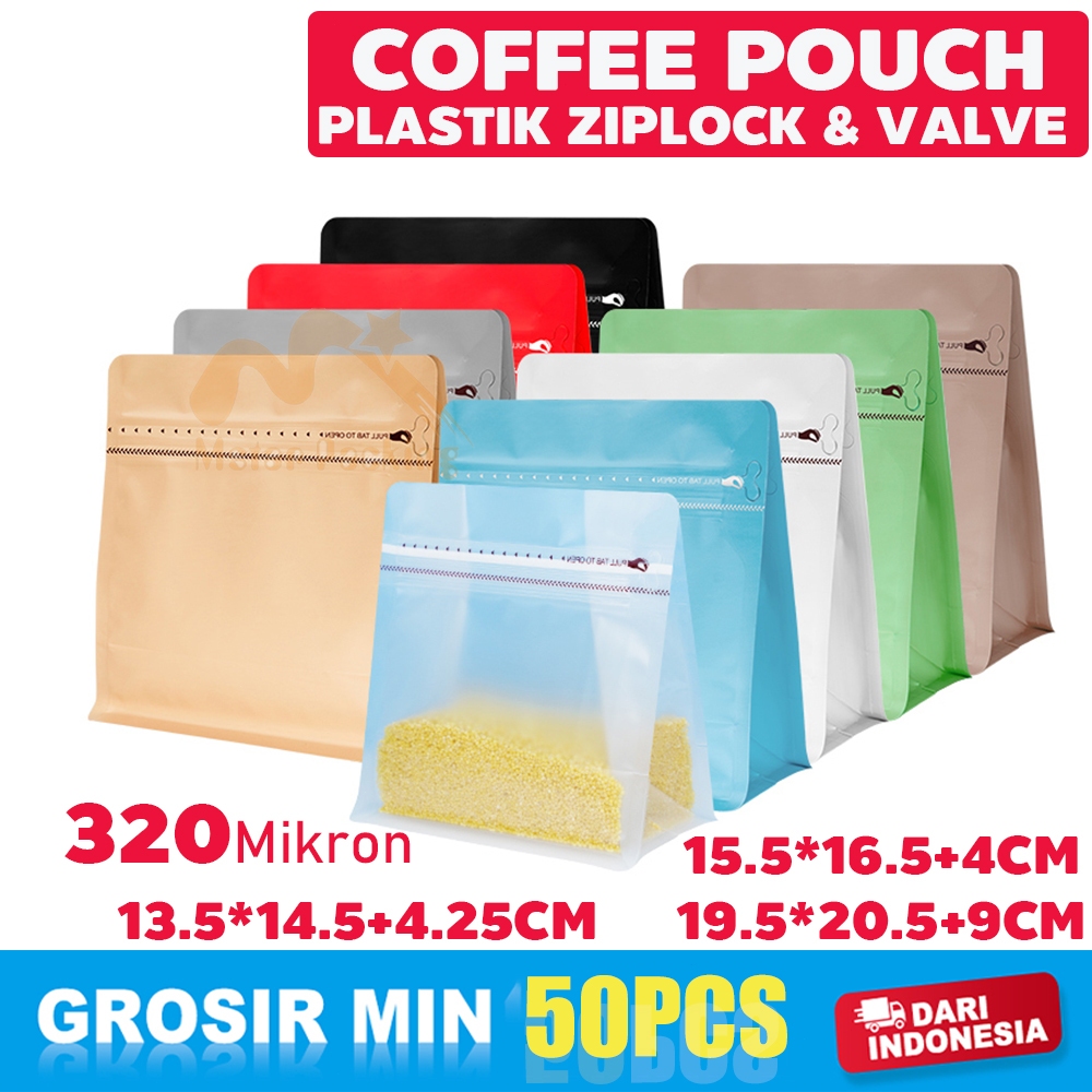 50PCS Coffee Bag Standing Pouch Kemasan Kopi Ziplock Flat Bottom Valve Makanan Plastik Klip Zipper Bag