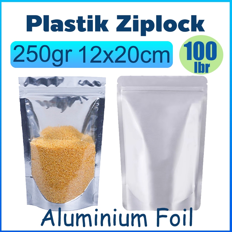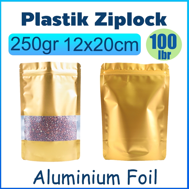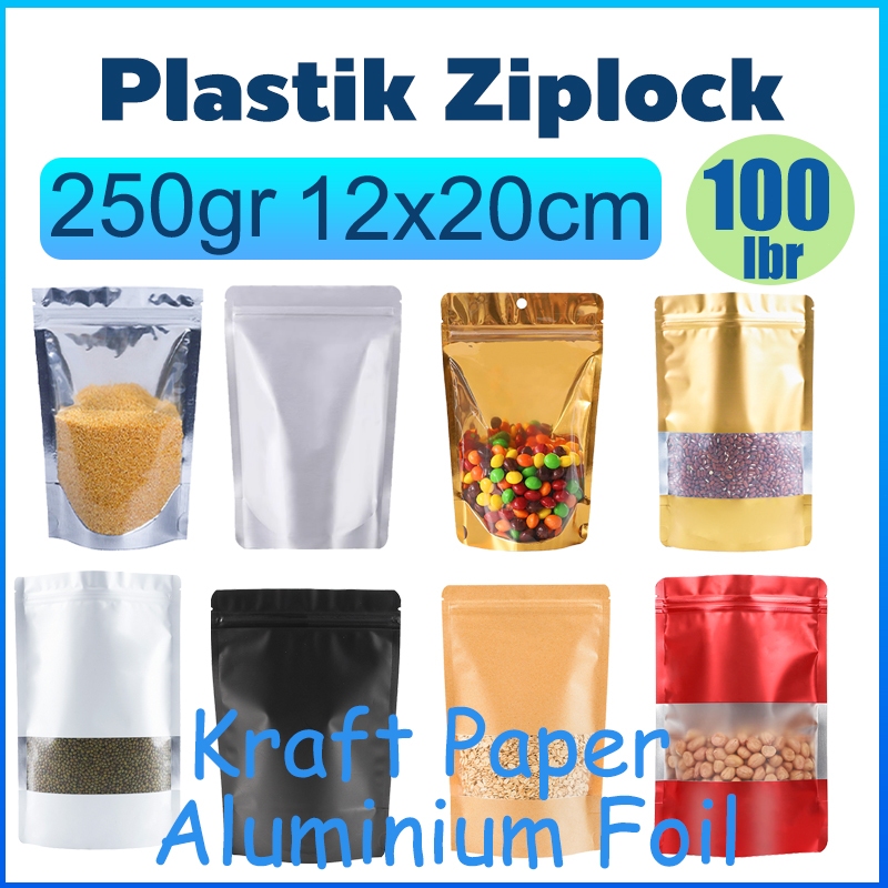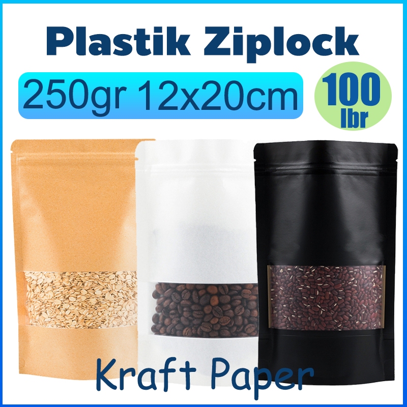 Plastik Ziplock Aluminium Foil 250gr 12x20cm Standing Pouch Window Kertas Kraft Kemasan Snack Dan Makanan Zipper Bag