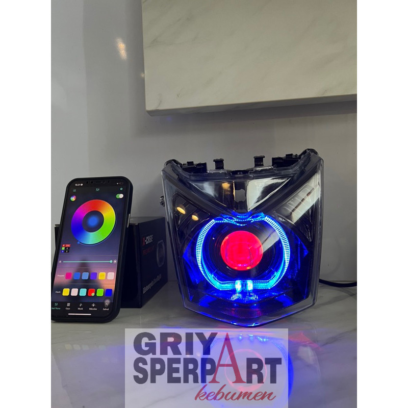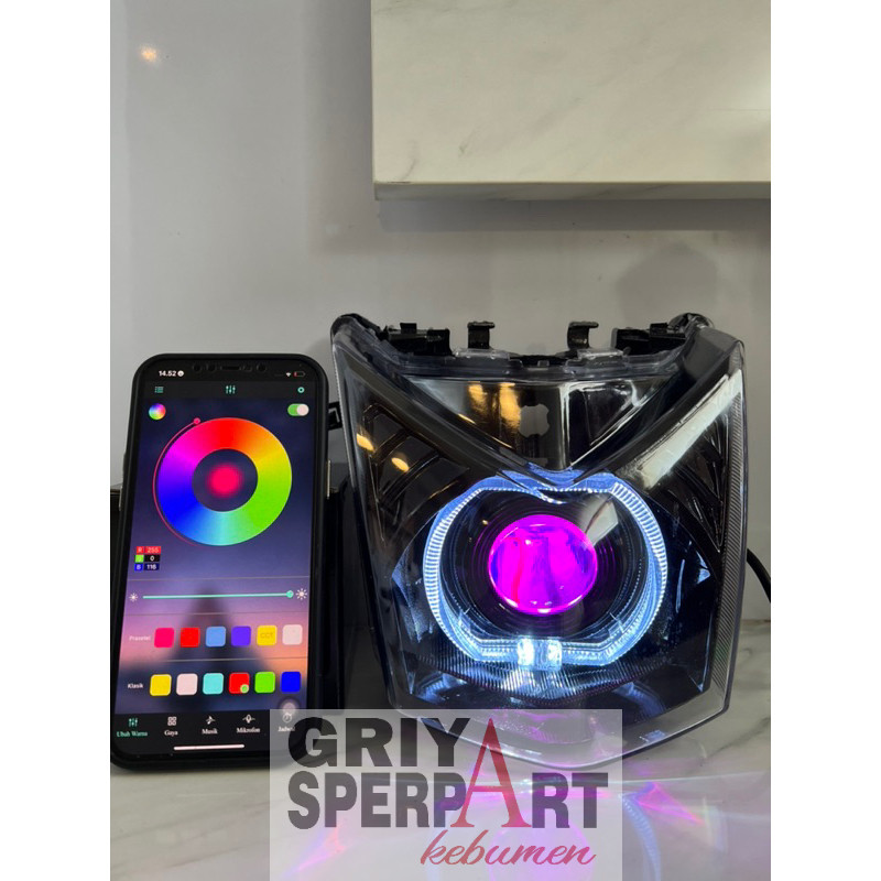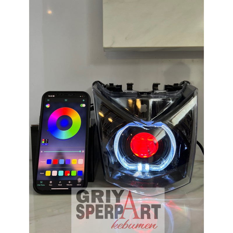 Lampu Depan Honda Beat FI Custom Billed Biled Devil RGB BLuetooth Ganti Warna Via Hp