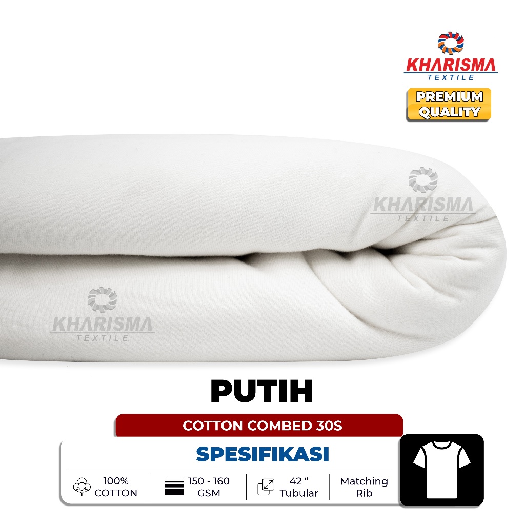 Bahan Kaos Cotton Combed 30s Warna Putih Kharisma Textile