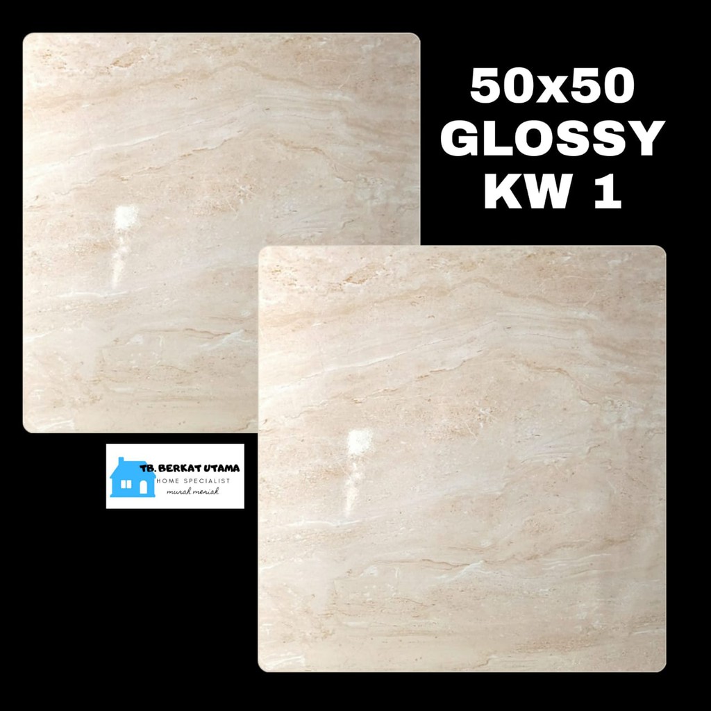KERAMIK LANTAI 50X50 GLOSSY CREAM MOTIF MARMER JASMINE