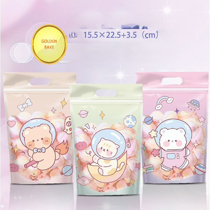 GBake [ISI 50 LEMBAR - 15x22+3.5 cm] Plastik Klip Ziplock Motif ASTRONAUT Plastik Standing Lucu Zipper Bag Motif Cookies