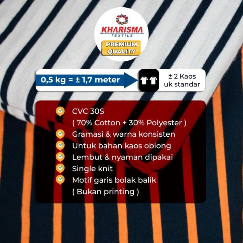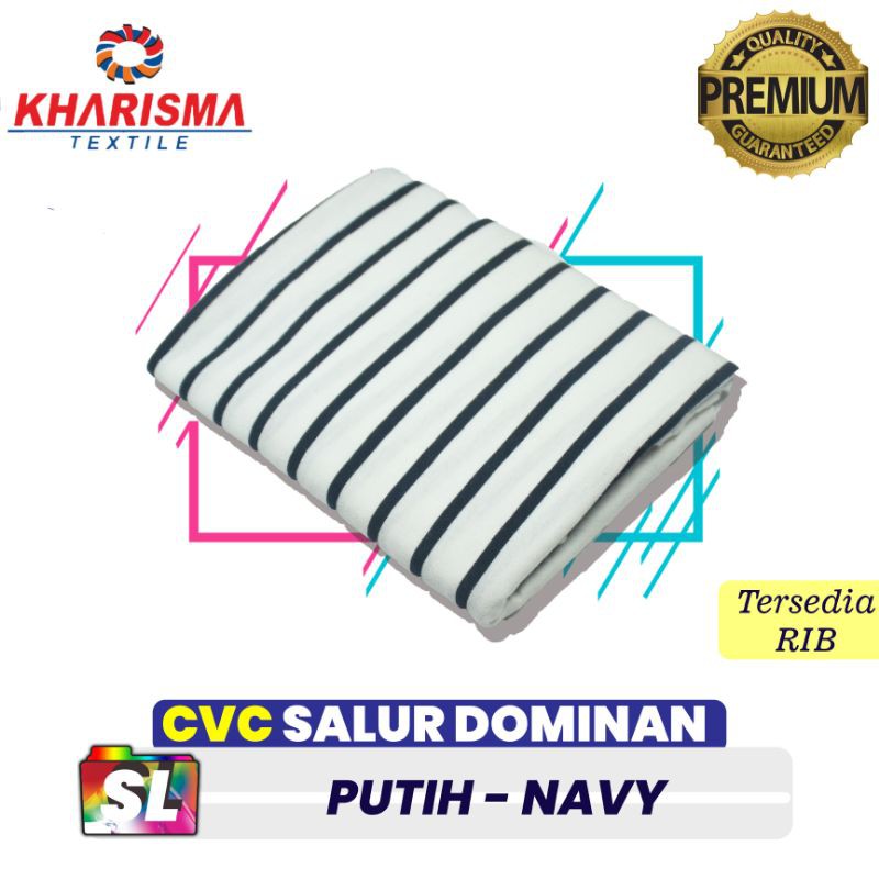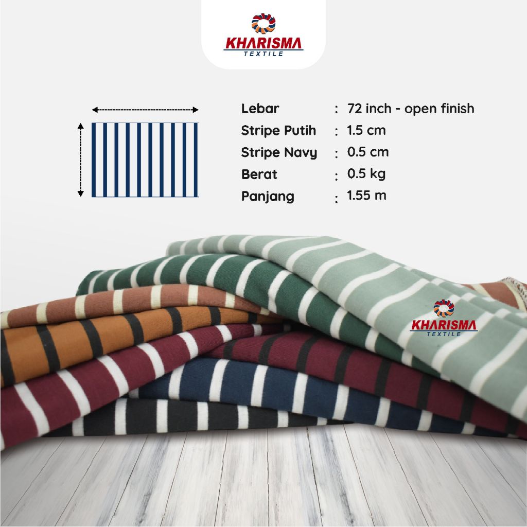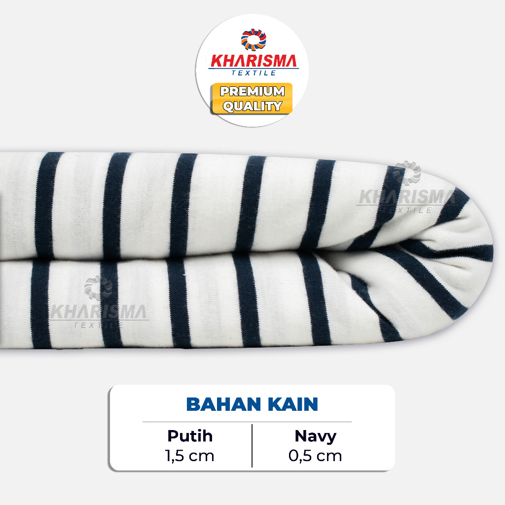 Bahan Kaos Kain Mix Cotton CVC 30s Salur Stripe Dominan Warna Putih - Navy Kharisma Textile / 0,5Kg