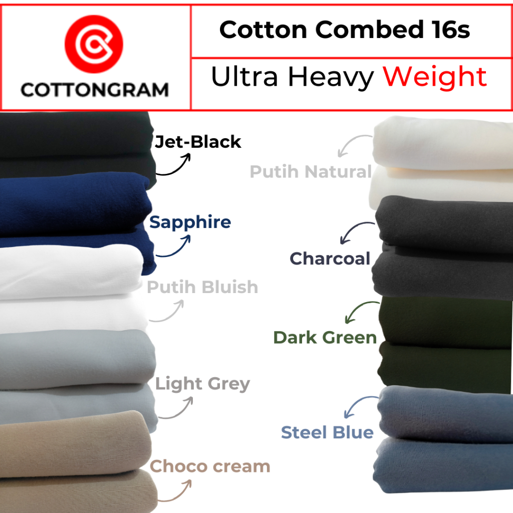 COTTONGRAM Kain Kaos Ultra Heavy Weight Cotton 16s Premium Bahan T Shirt