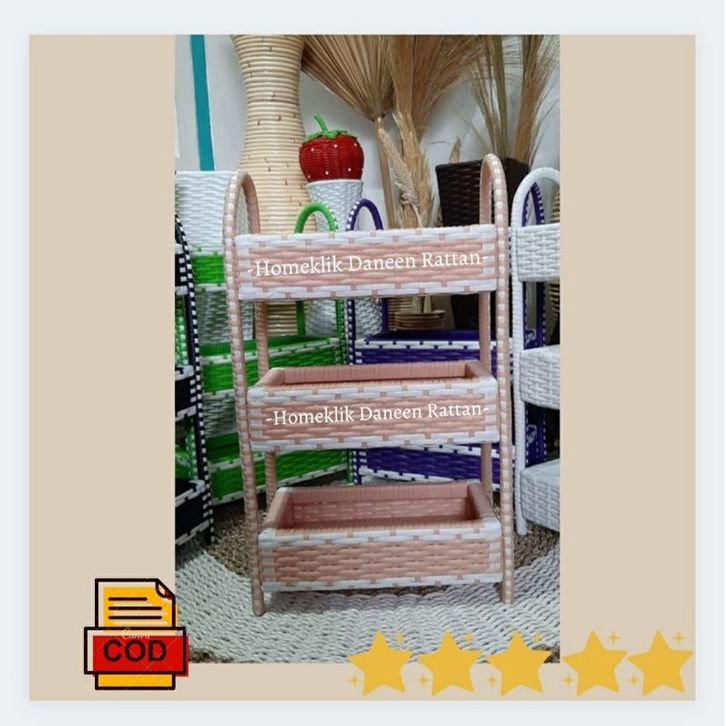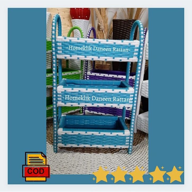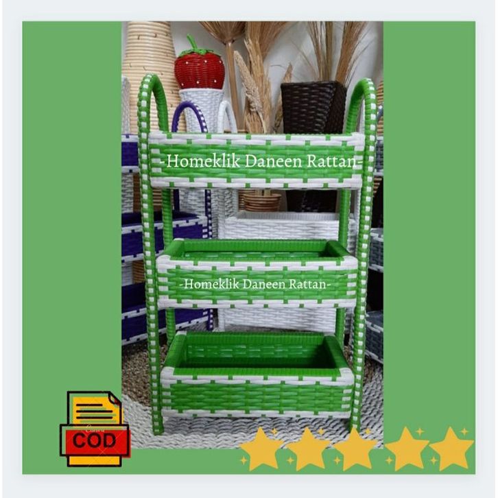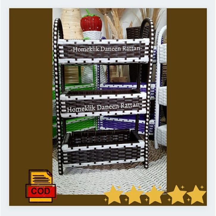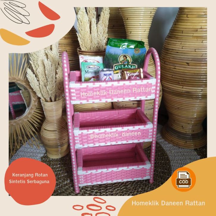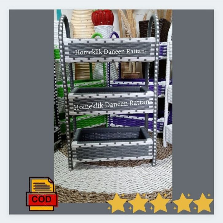 TEMPAT BUMBU SERBAGUNA ROTAN SINTETIS 3 SUSUN RAK SUSUN ROTAN PLASTIK