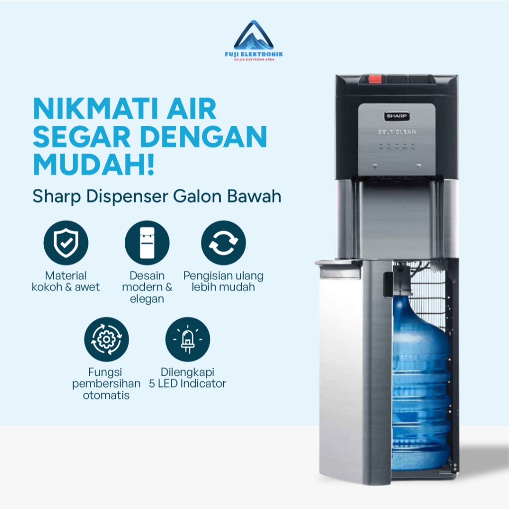 Sharp Dispenser Galon Bawah SWD-73EHL-BK Panas Dingin Self Cleaning Function Hitam Putih