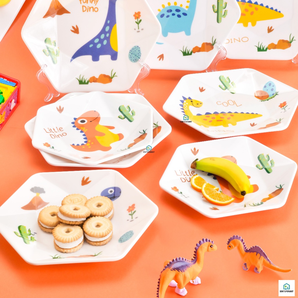 []Piring Melamin Dino Asli (Motif Keramik Imitasi) Tebal Piring Segi Enam Buah Kue Snak Dekorasi