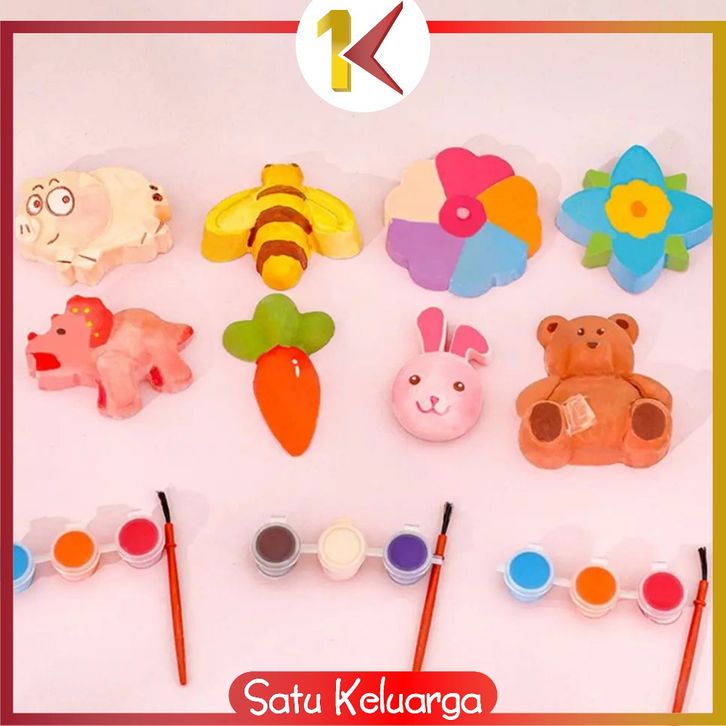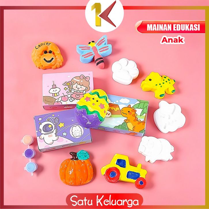 SK-M385 Mainan Edukasi Anak Alat Lukis Patung Gypsum Motif Animasi Lucu / Paint Gypsum Mainan DIY Mewarnai 3D Mini KIT