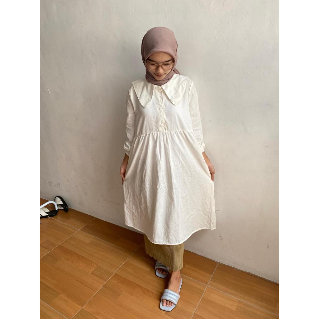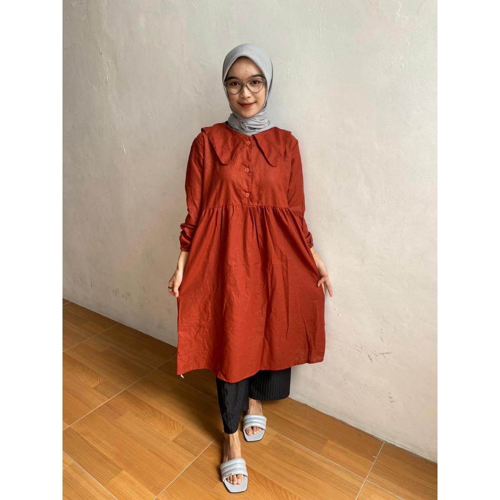 LIEZA LONG TUNIK LINEN POLOS KEMEJA TUNIK ATASAN MUSLIM WANITA LD 105 DAN 120
