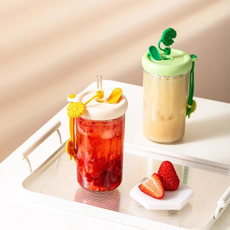 VOOVA Mug Gelas Tumbler Dengan Sedotan Milk Cup Tumbler Glass With Straw